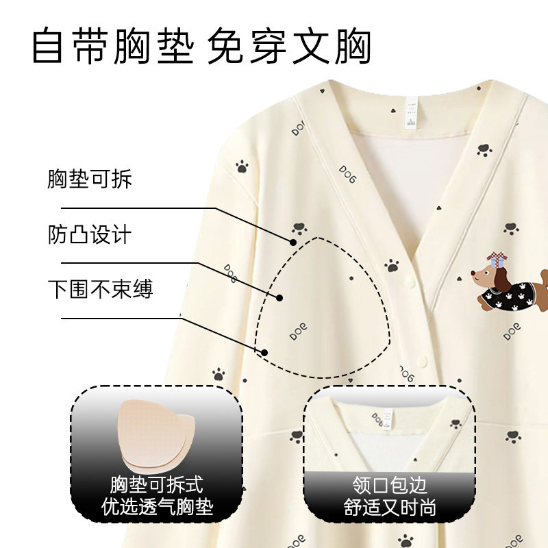 惊喜新势力周 套装 芬腾女士睡衣春秋季 长袖 家居服 纯棉翻领开衫
