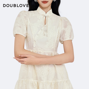 新款 桑蚕丝国风提花连衣裙DOUBLOVE贝爱2026春季 甜美新中式
