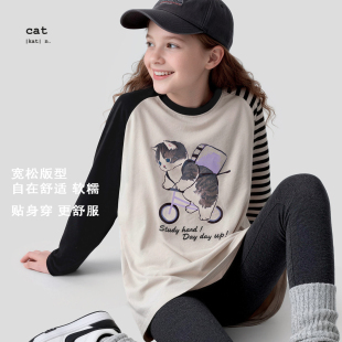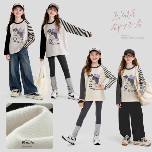 春装 青少年童装 2026新款 大童宽松版 儿童休闲上衣秋季 女童T恤长袖
