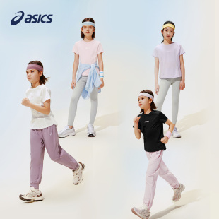 ASICS 吸湿速干弹力运动微收腰基础女生T恤 亚瑟士女童26年夏季