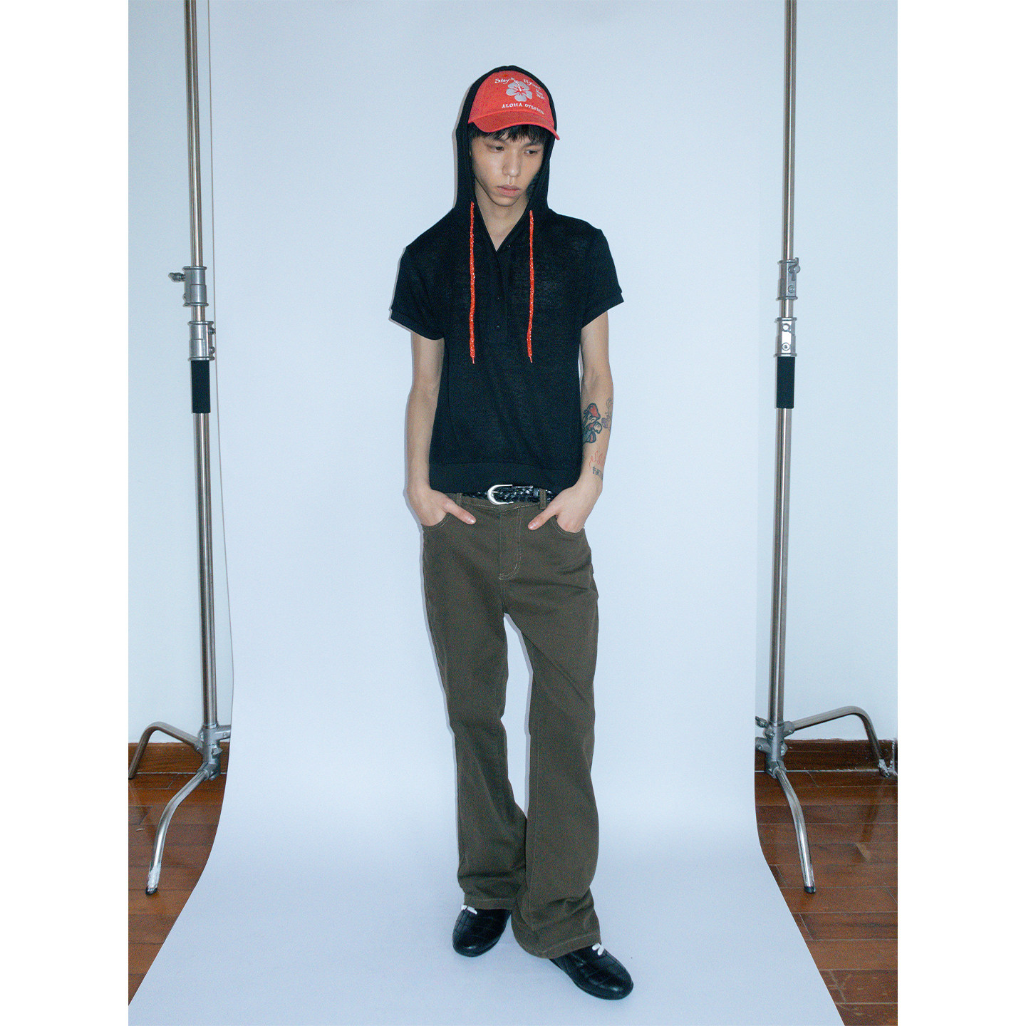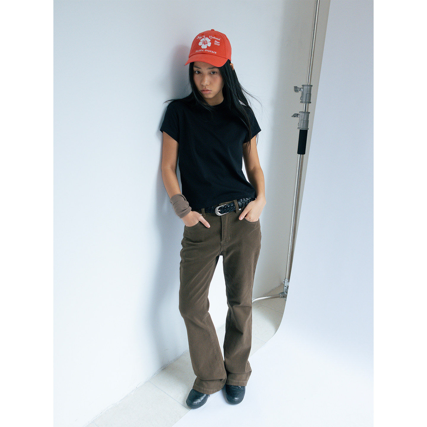 复古休闲长裤 中高腰弹力显瘦美式 撞色明线微喇叭裤 FUNKYFUN