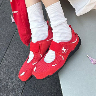 26夏季 平底红色女鞋 新款 透气休闲鞋 玛丽珍羽翼鞋 Champion冠军凉鞋
