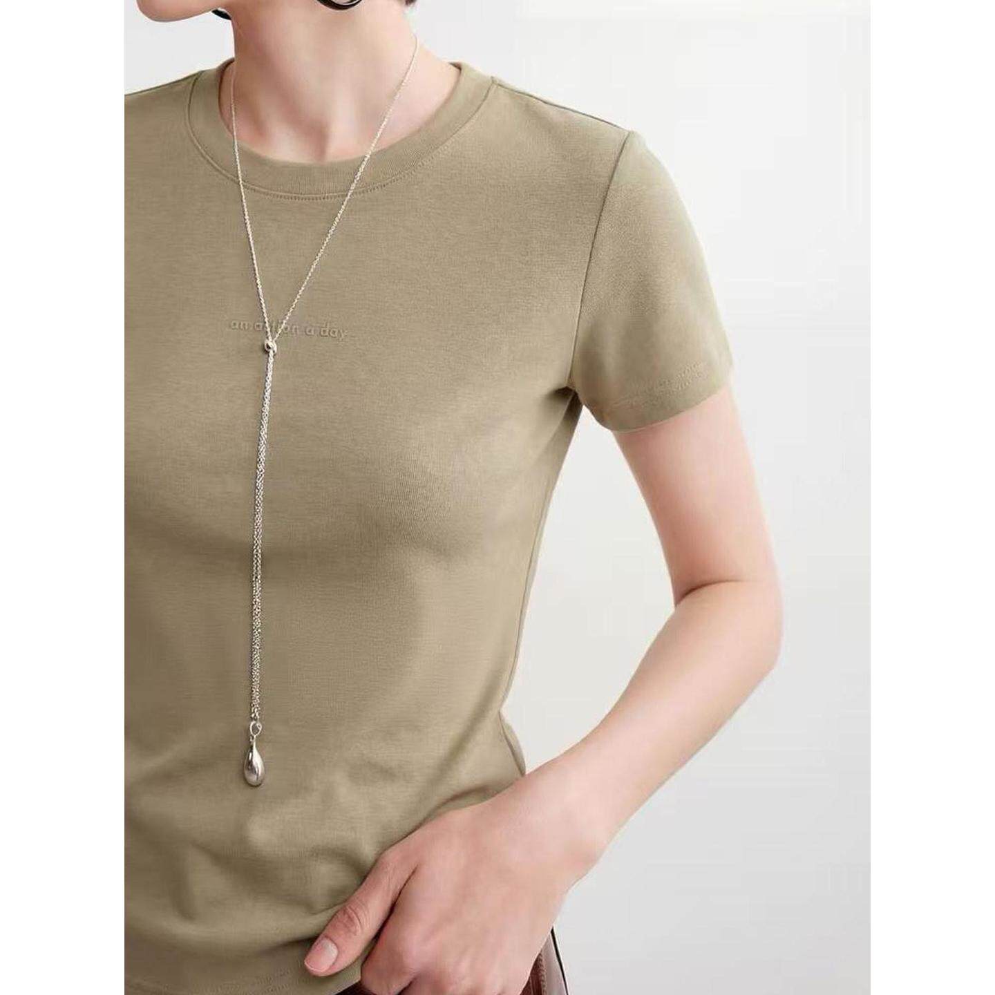 卡其短袖 百家好美式 T恤女2026夏季 新款 天丝上衣 Basic 修身 House