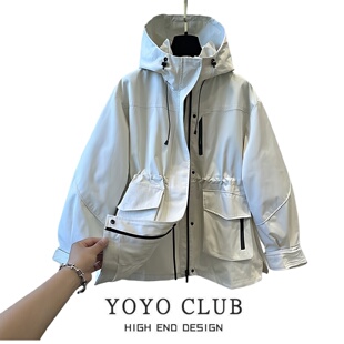 胖MM百搭显瘦冲锋衣 大码 品牌折扣欧货收腰连帽工装 外套女2026春季