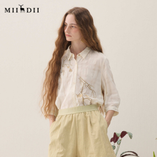 原创艺术刺绣文艺衬衫 新品 女261MC0086 2026春季 谜底棉感衬衣分袖