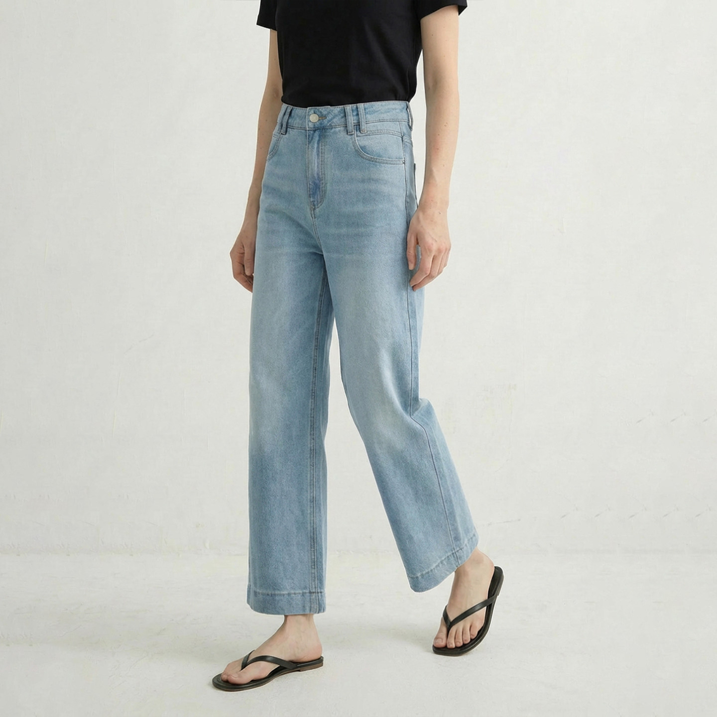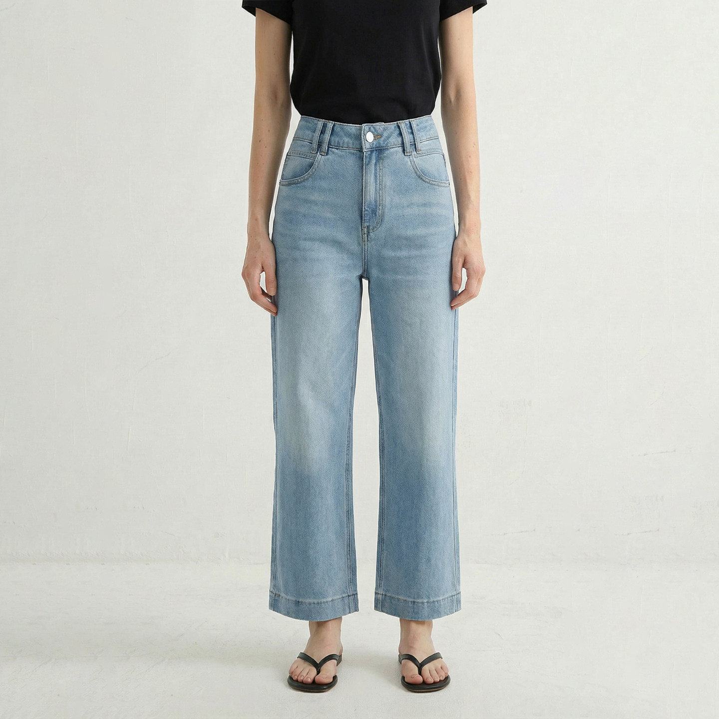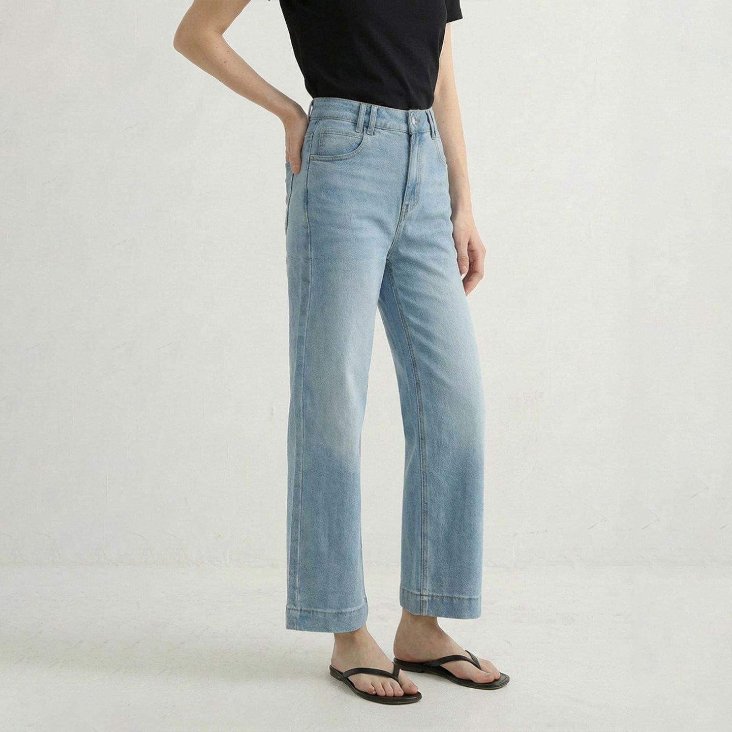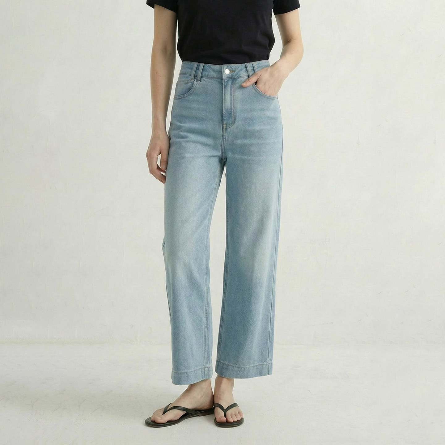 浅色九分裤 芙蕖FUXU 女薄款 高腰直筒休闲裤 莱赛尔棉四面弹牛仔裤
