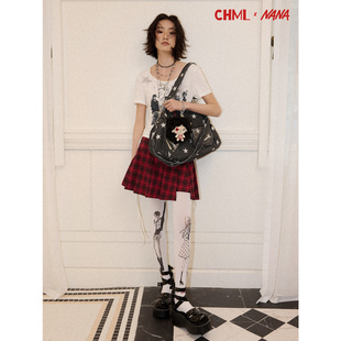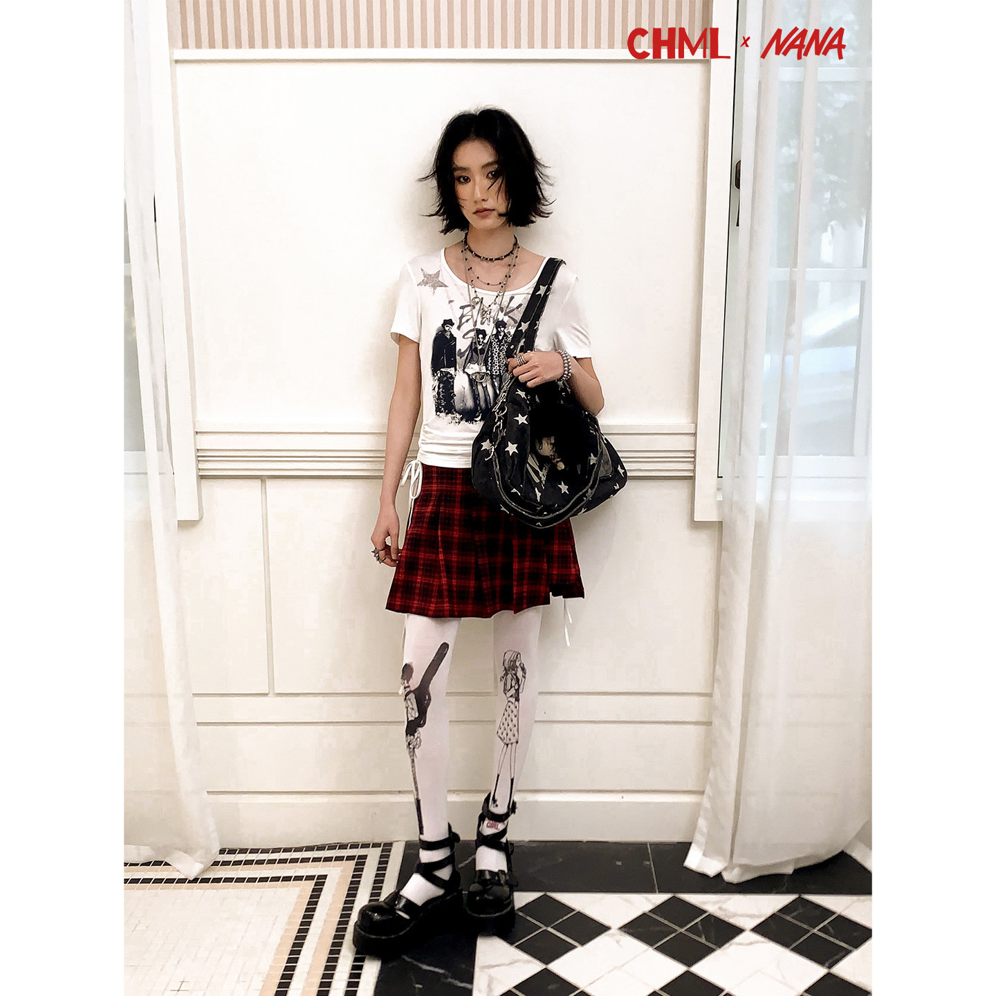 化学少女×NANA联名 袜女朋克风复古 设计感人物印花白色连裤