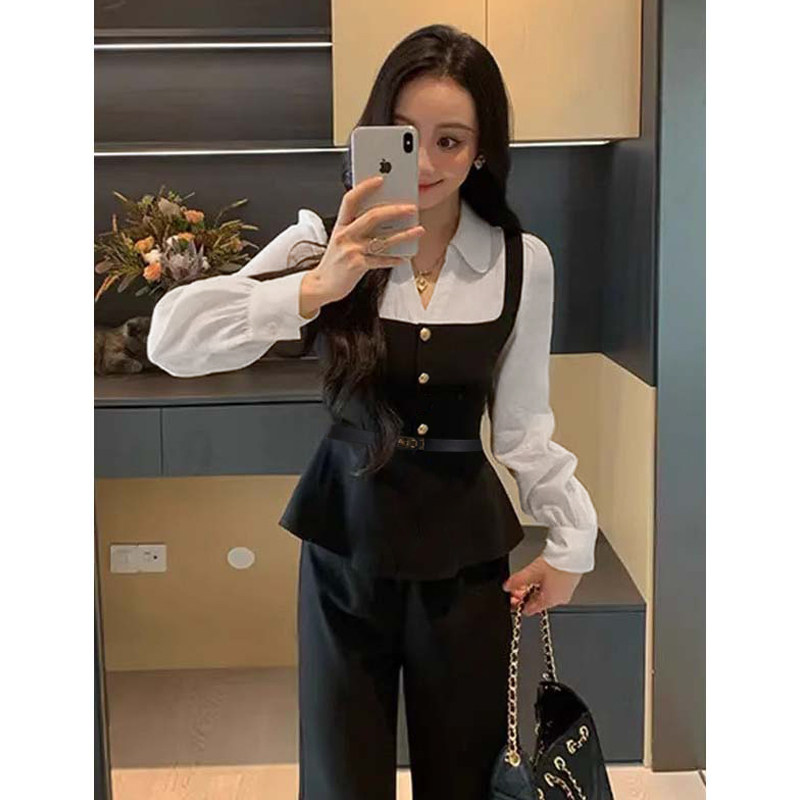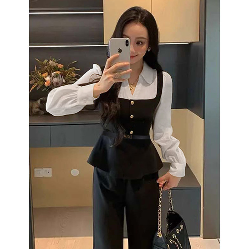 收腰显瘦连体裤 新款 D3795 休闲假两件2026秋季 撞色拼接时尚