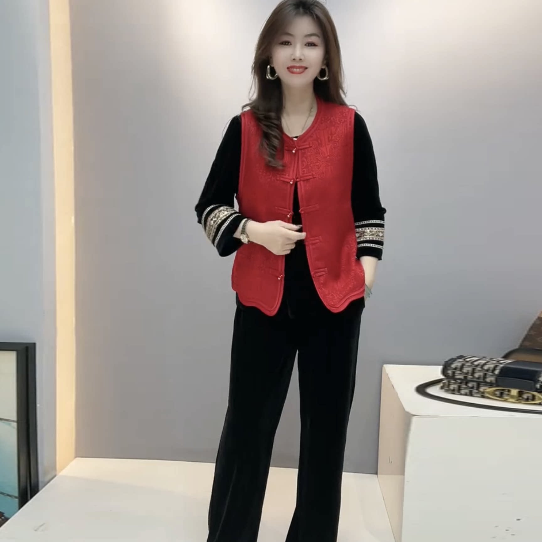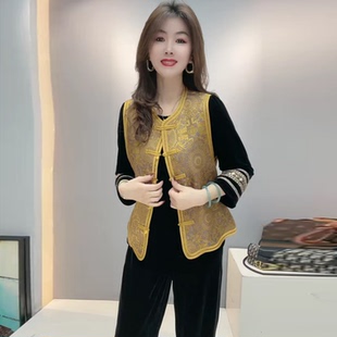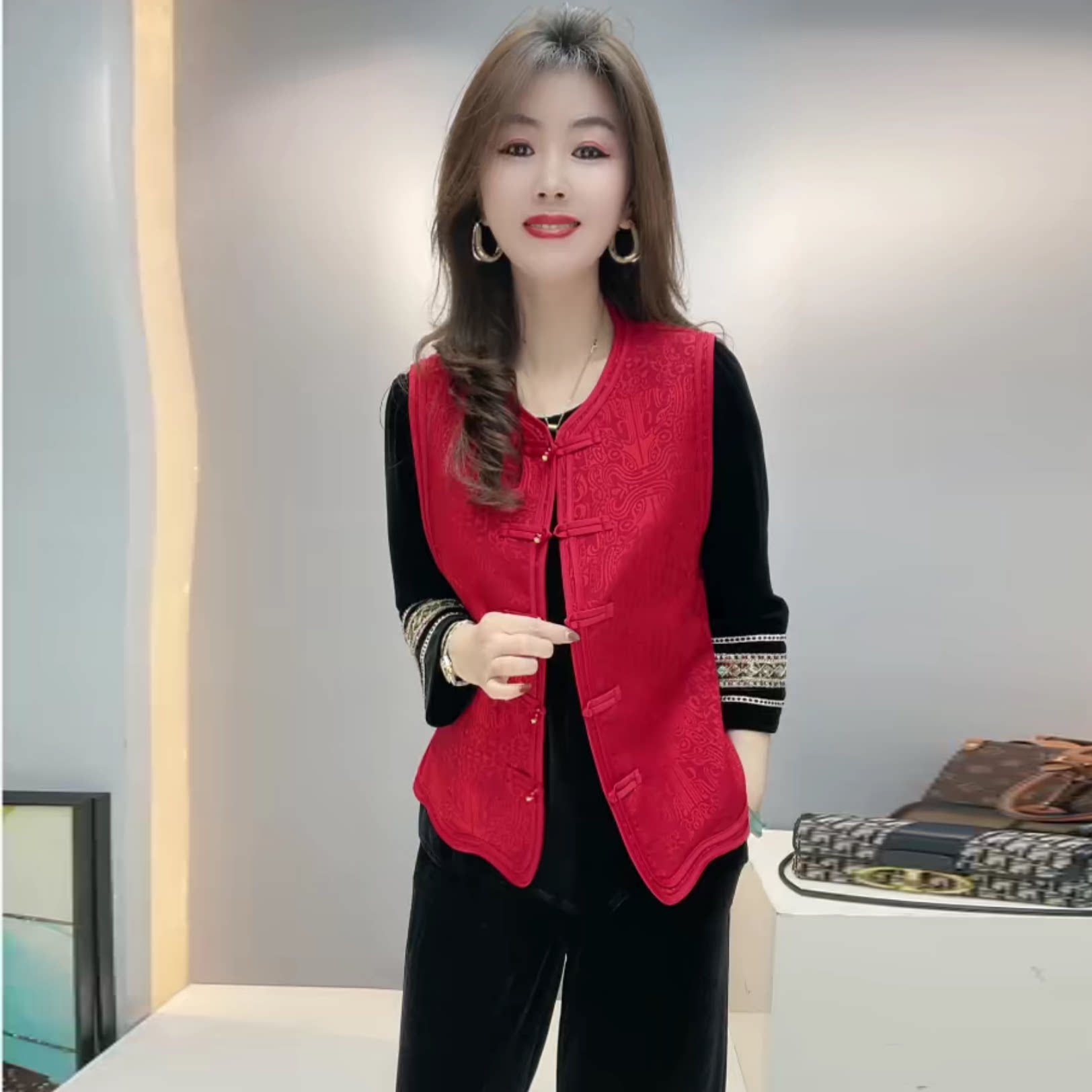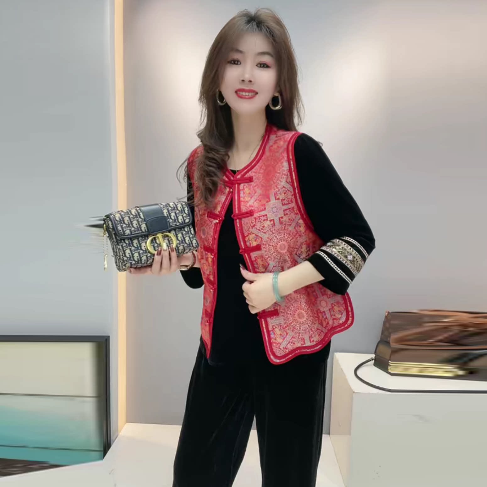 马夹上衣 外套大码 高端气质中式 国风春秋缎面提花马甲洋气坎肩无袖