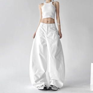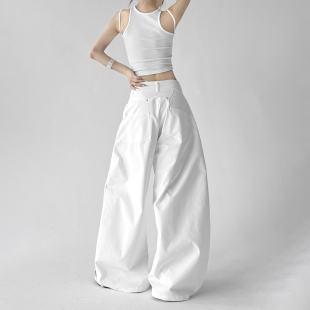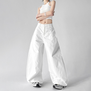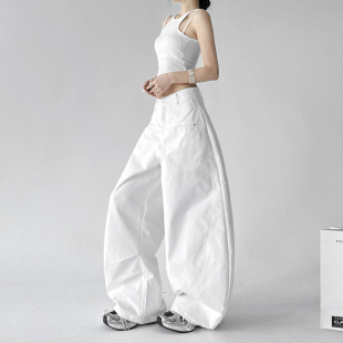 白色阔腿裤 女高腰宽松慵懒风显瘦百搭休闲工作直筒弯刀高个子加长