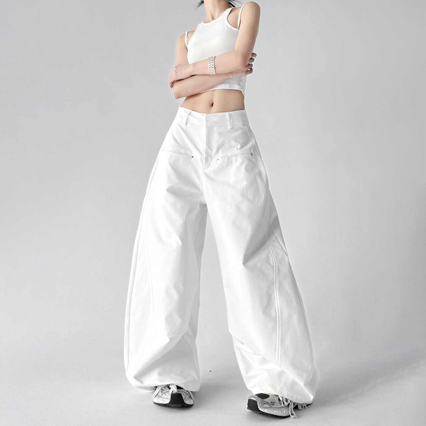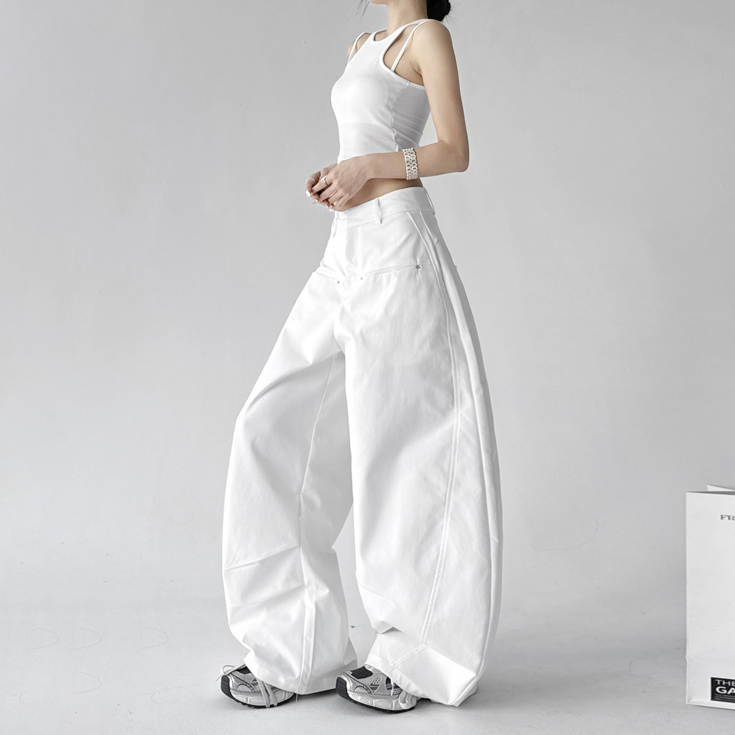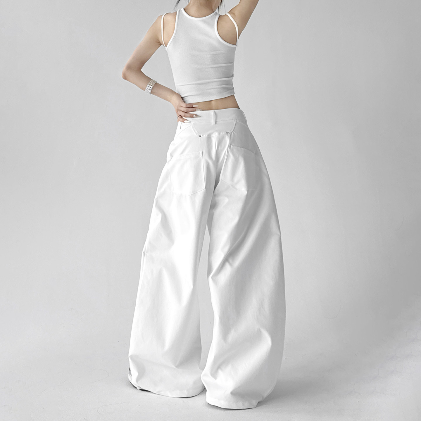 商品标签:白色阔腿裤