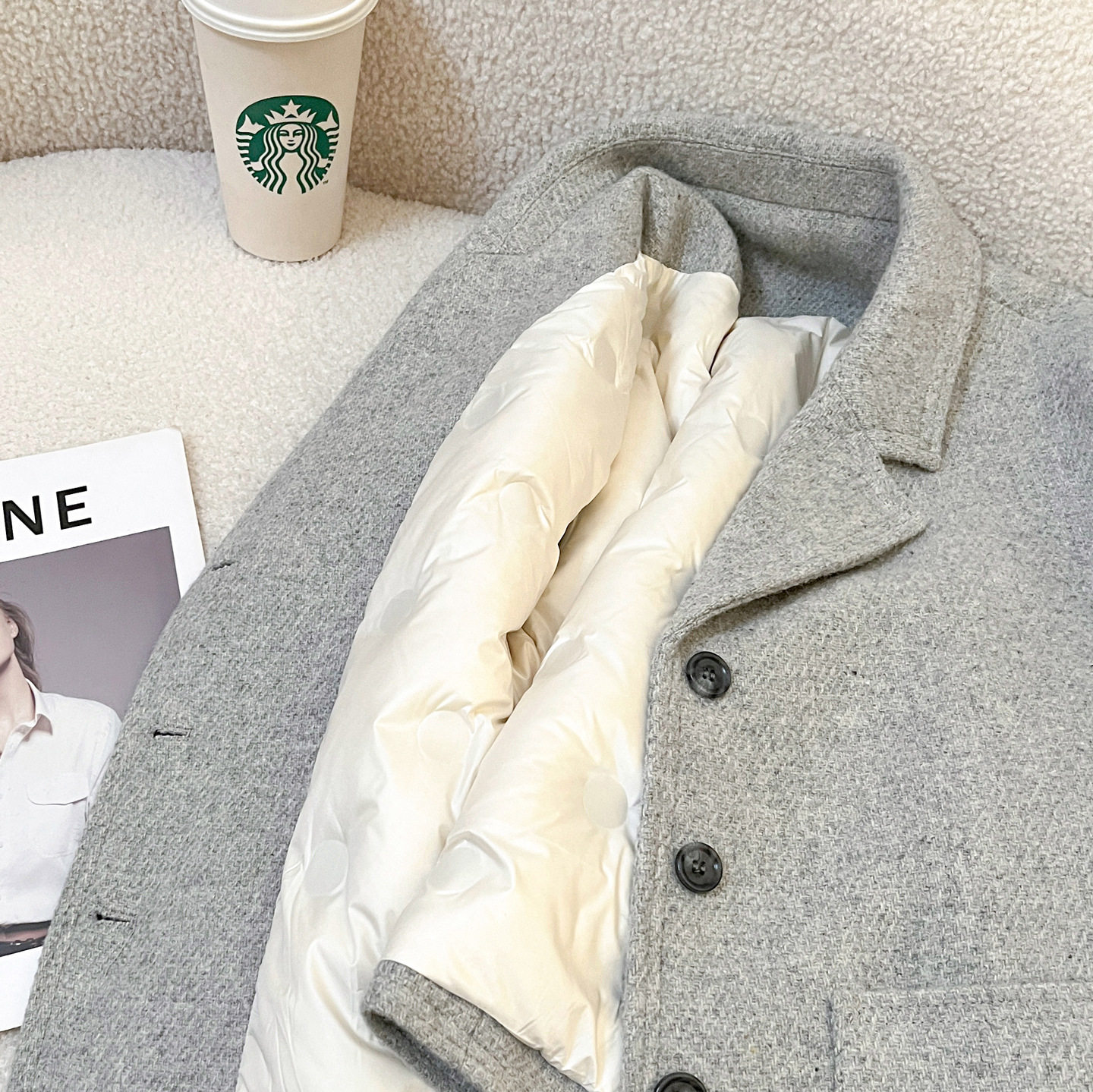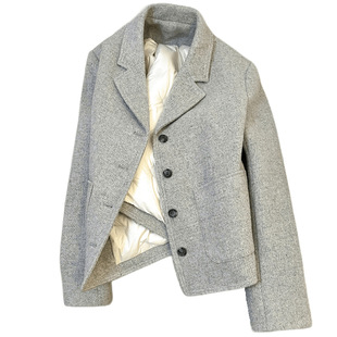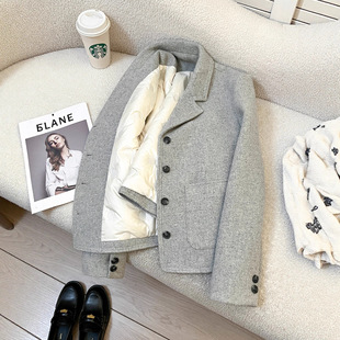 高级感时尚 冬季 外套女2025新款 今年流行特惠灰色羽绒内胆毛呢西装