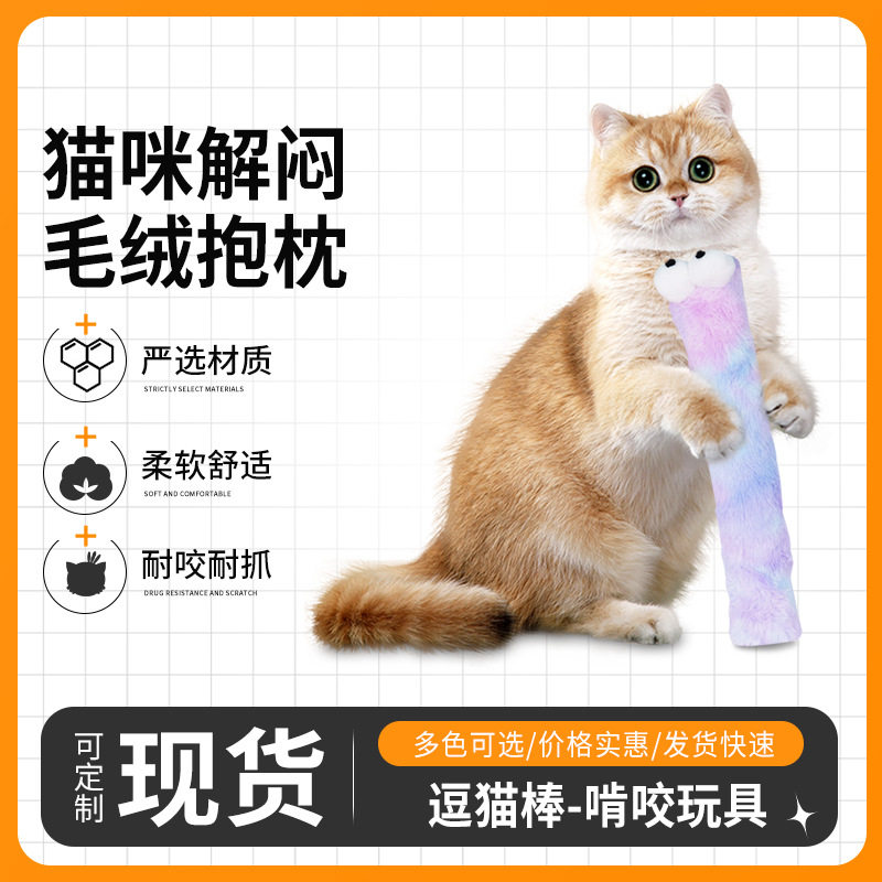 猫咪毛绒抱枕自嗨解闷毛绒渐变眼睛毛毛虫抱枕玩具啃咬逗猫棒