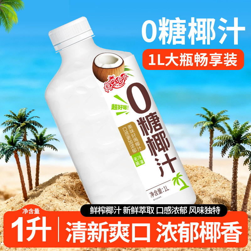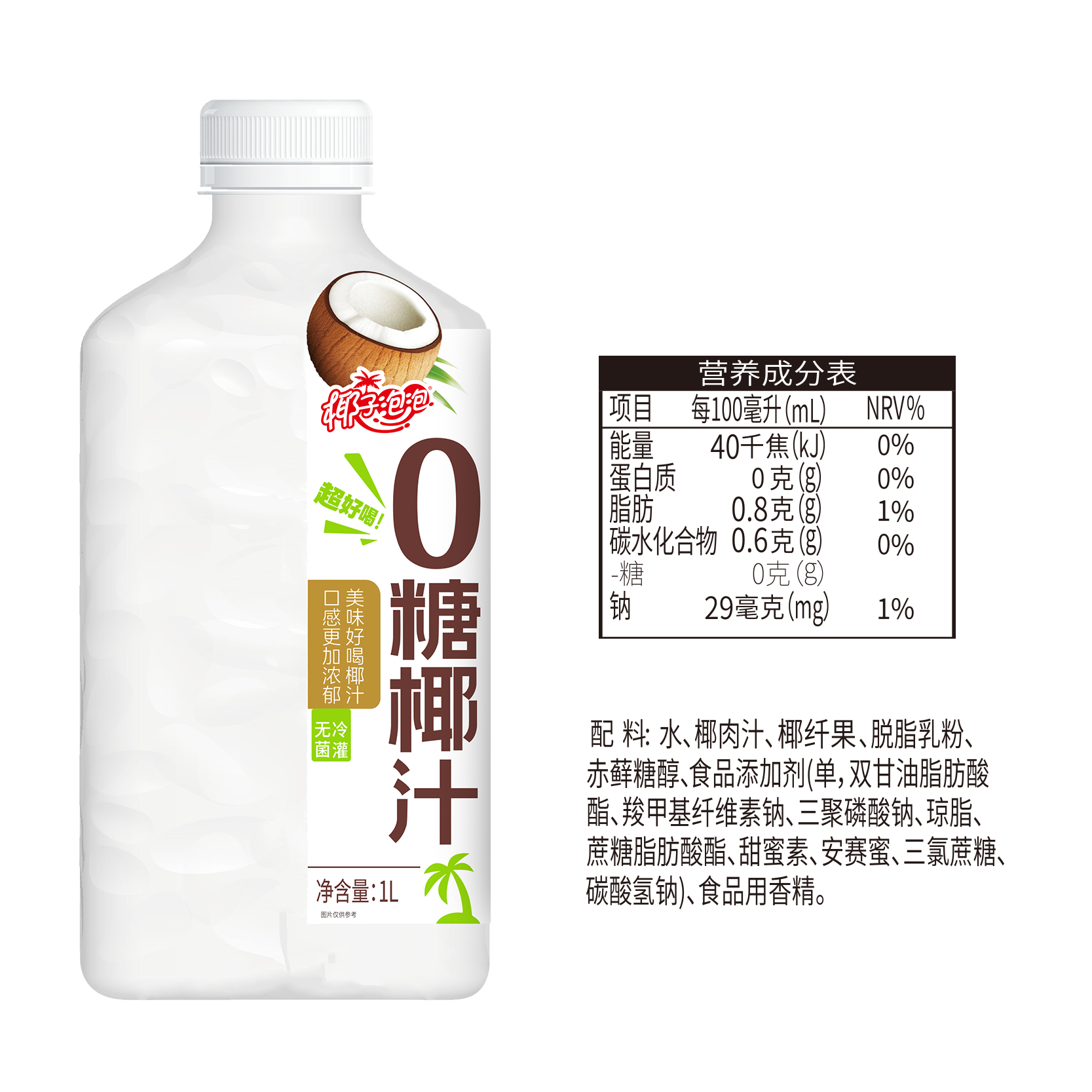 椰子泡泡0糖椰子汁1Lx2大瓶装 零糖生椰拿铁椰汁饮料家庭送礼饮品