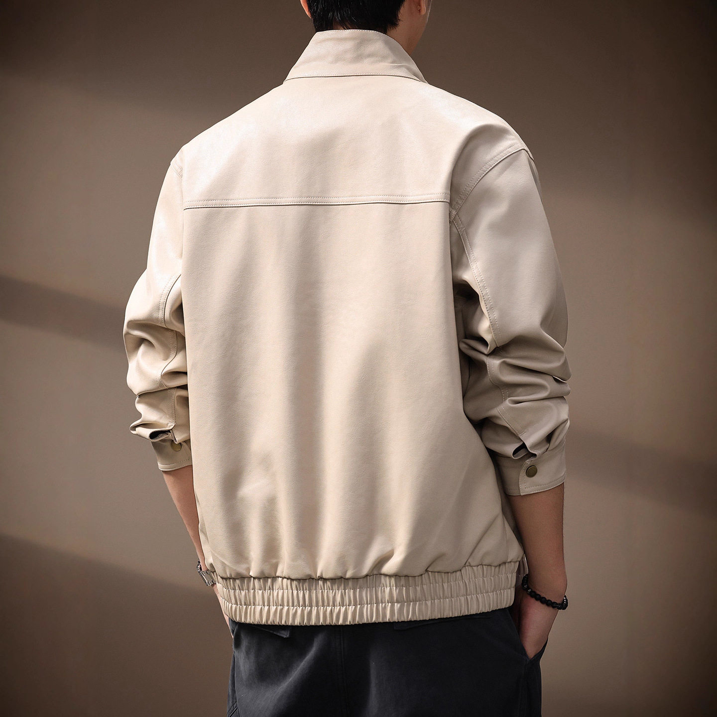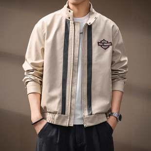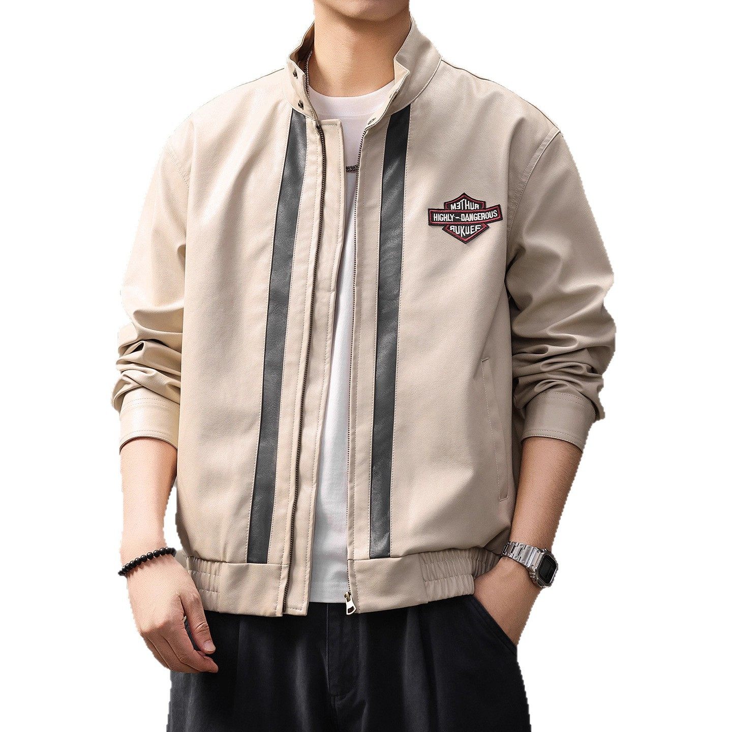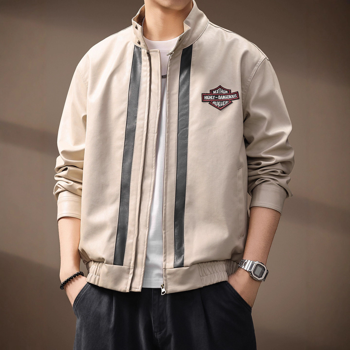 新款 秋季 潮流飞行员立领夹克外套 复古字母潮牌PU皮衣男士 高端美式