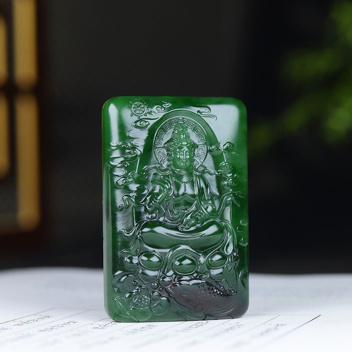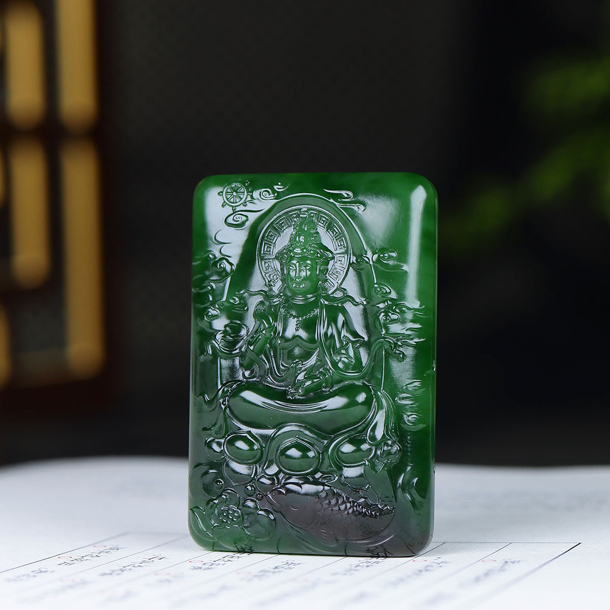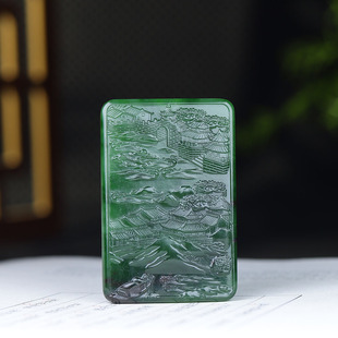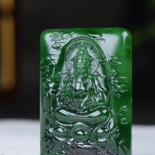 俄罗斯和田玉菠菜绿碧玉观音挂件玉牌吊坠玉坠40g 古晨珠宝