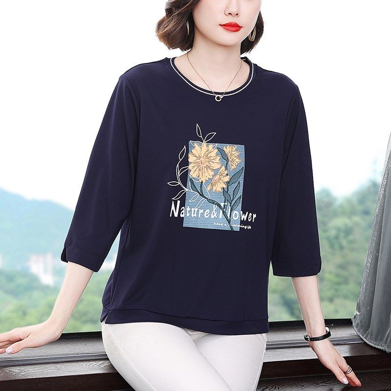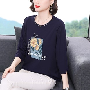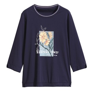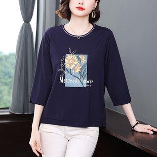 中袖 夏装 t恤打底衫 宽松洋气中年女士妈妈七分袖 上衣丅 2024年新款