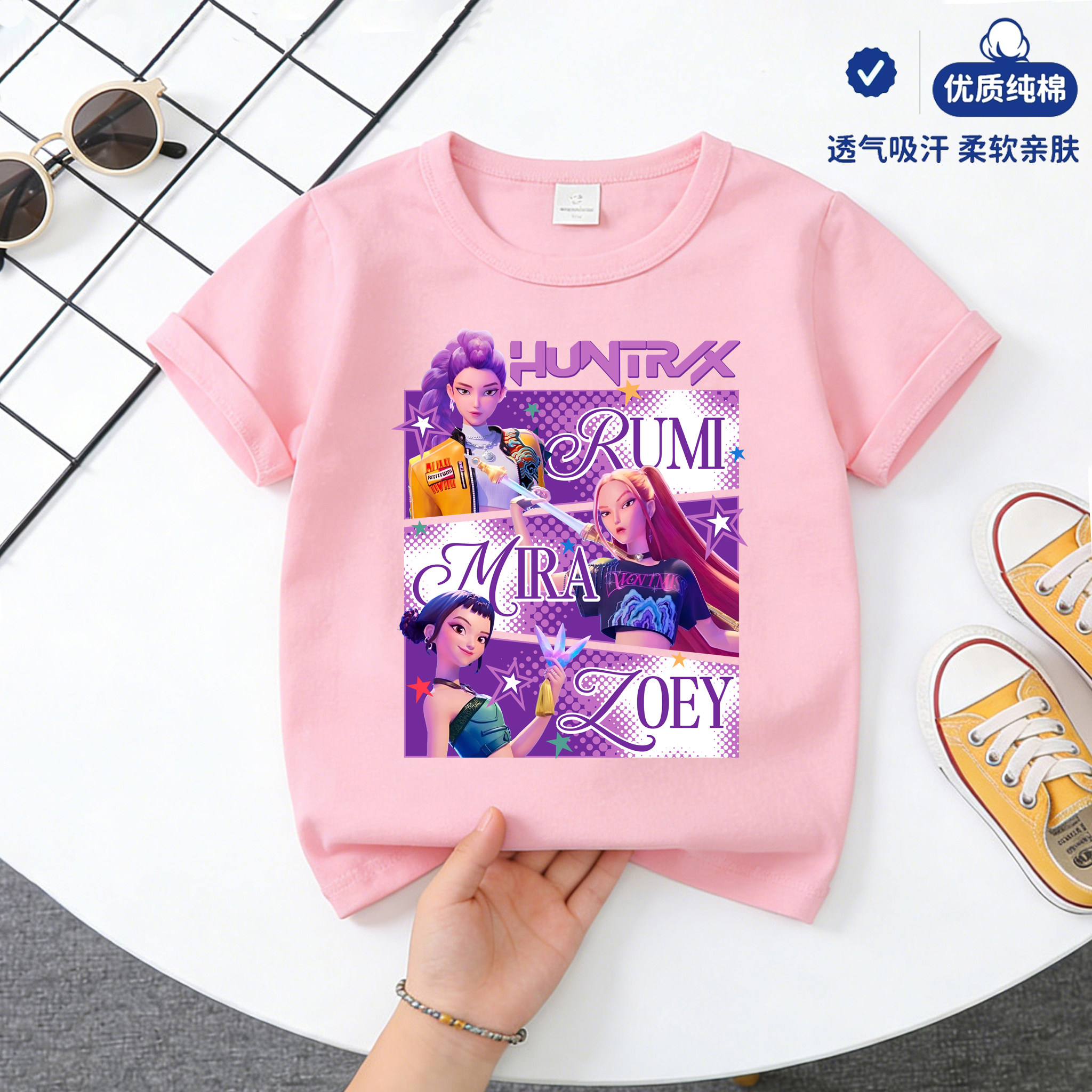 儿童衣服圆领上衣打底衫 kpop猎魔女团纯棉短袖 新款 夏季 T恤女童装