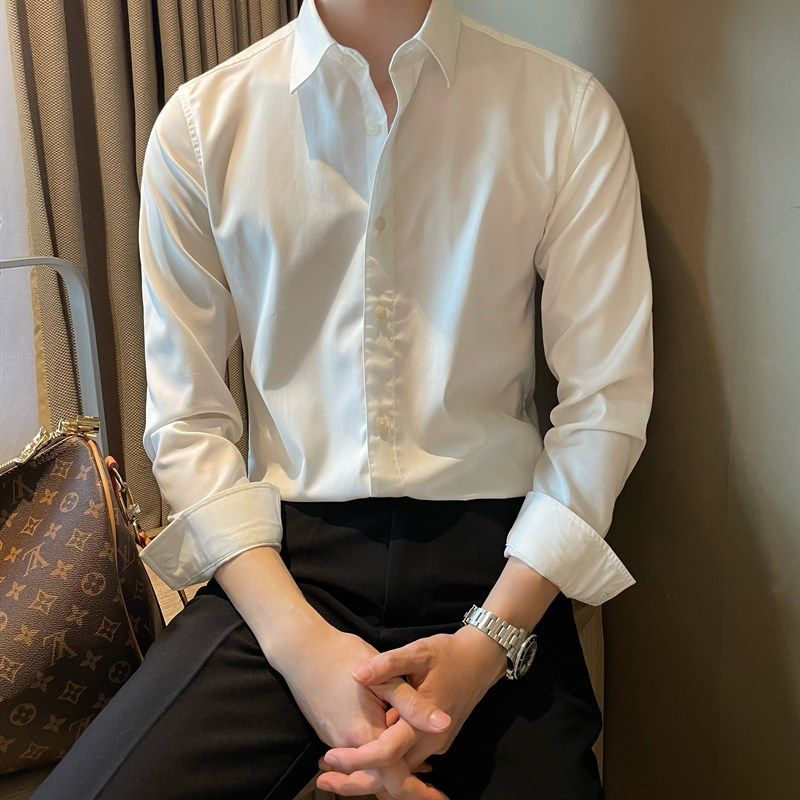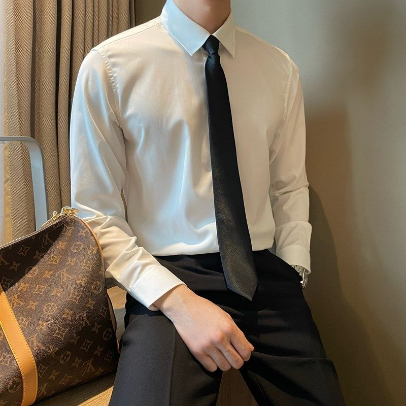 学院风男士 青年免熨烫方领白衬衣时尚 商务休闲纯色内搭衬 扣式 韩版