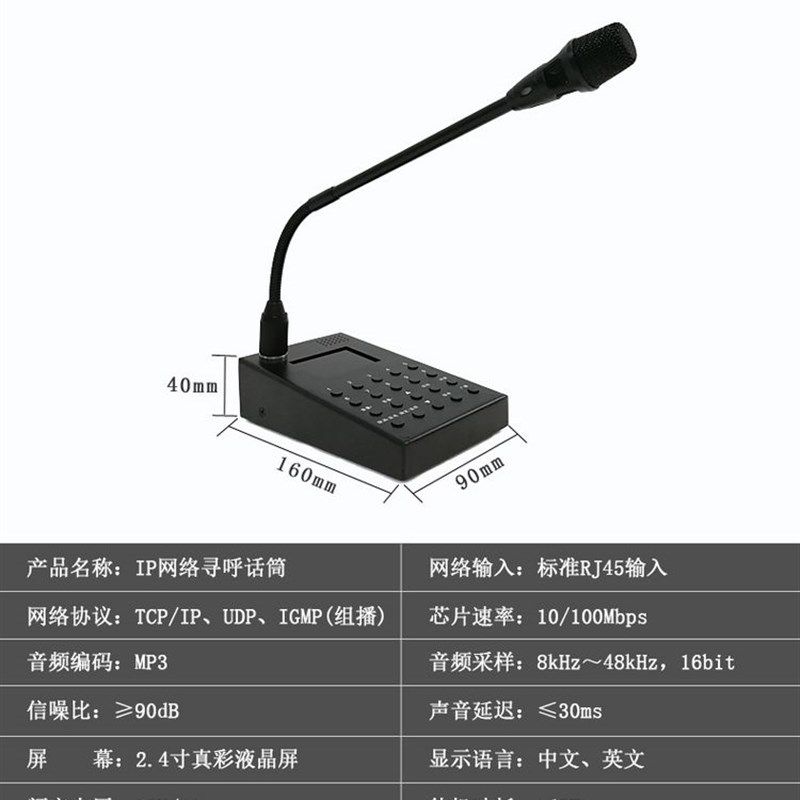 IP广播寻呼话筒音频输入输出音量可调节网络传输带显示屏实体按键
