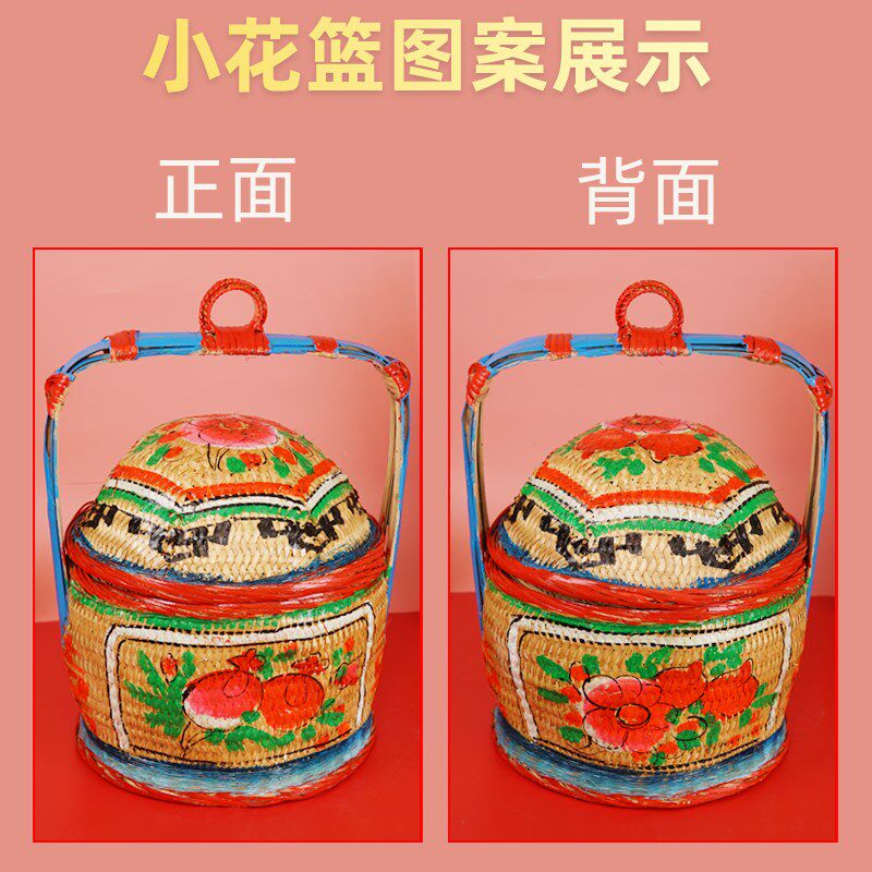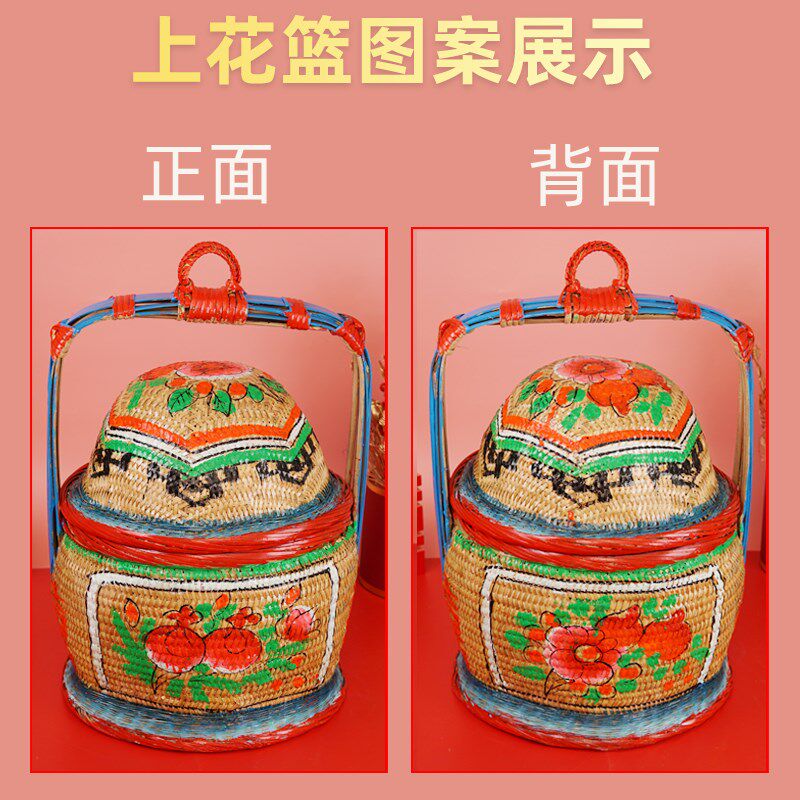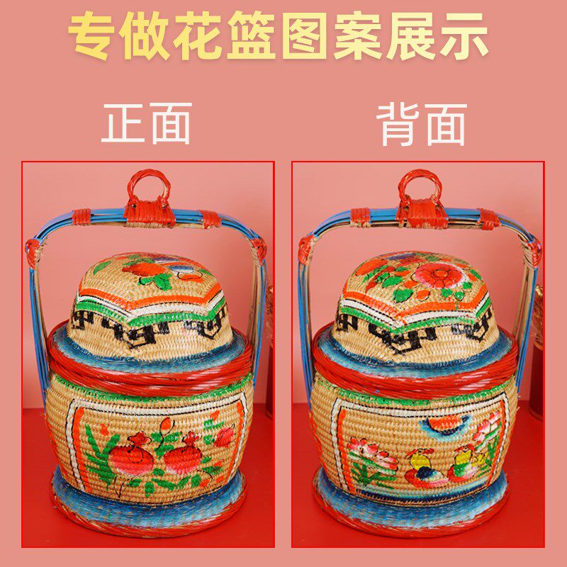 潮汕婚嫁娶结婚喜庆用品竹制品纯手工彩绘花篮潮州竹艺迷你竹篮子