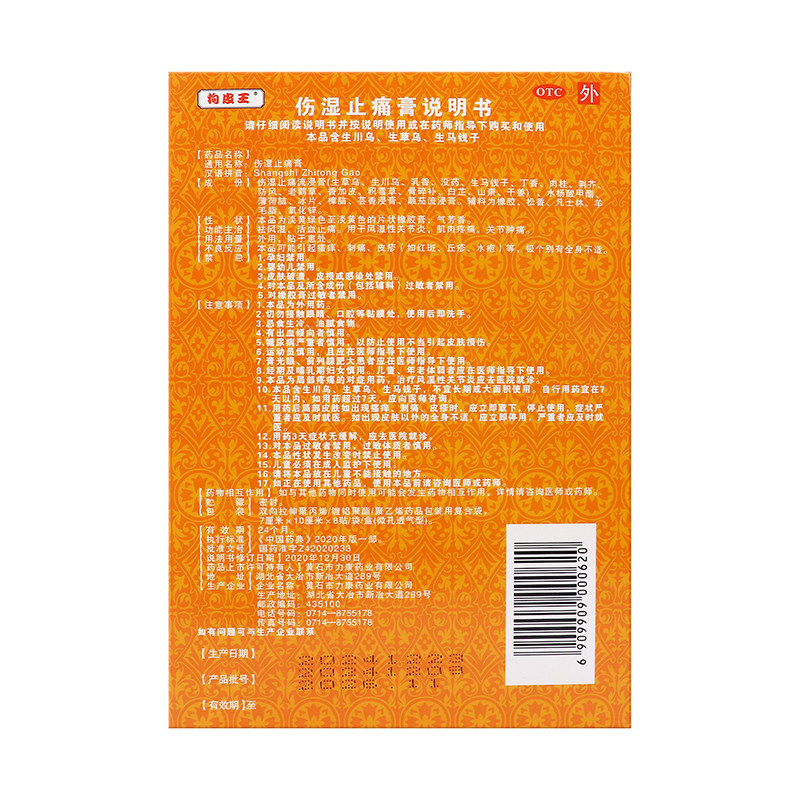 狗皮王伤湿止痛膏 盒祛风湿骨质增生引起疼痛麻木 7cm×10cm×8贴