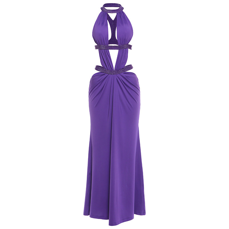 性感露背修身 欧美宴会风深V镂空挂脖连衣裙女 长裙潮 PUSS WEIRD