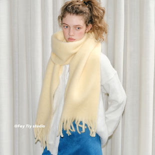 加厚保暖百搭氛围感披肩 含羊毛细腻流苏围巾冬季 feytiy 芝士奶黄