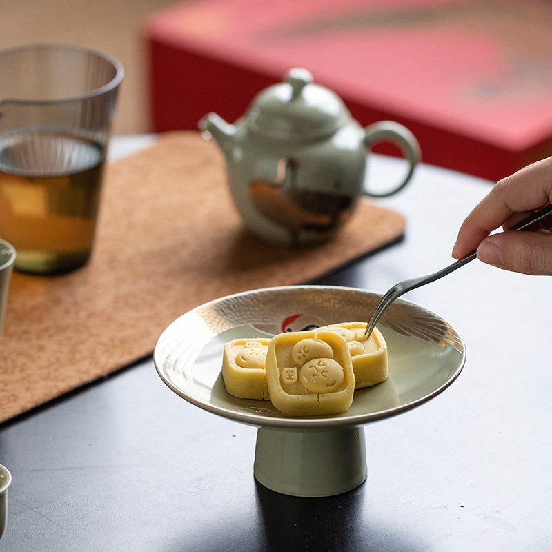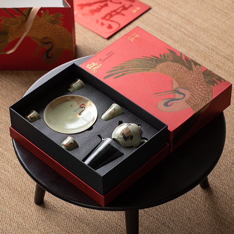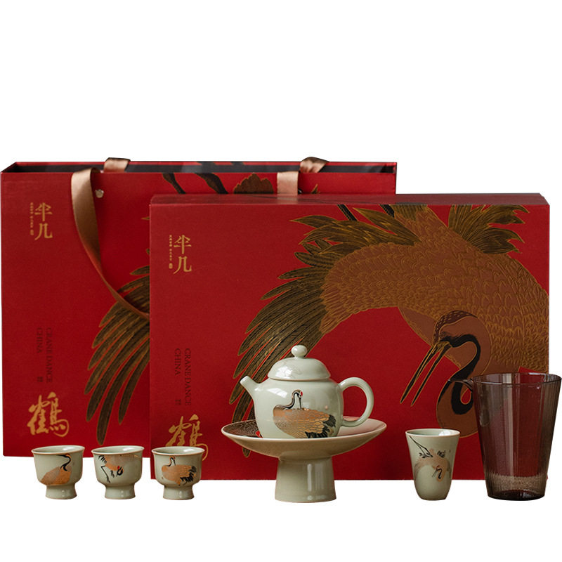 山鼎鹤舞神州一壶四杯茶具套装 家用陶瓷果盘玻璃公杯小套组商务礼