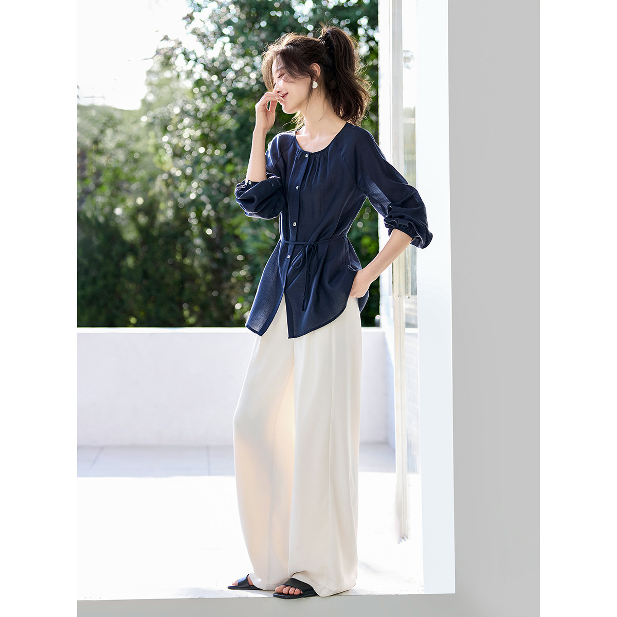 上衣衬衫 沫晗依美淑女上衣2026春季 宽松显瘦罩衫 清透飘逸长袖 新款