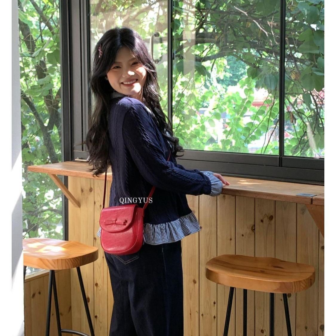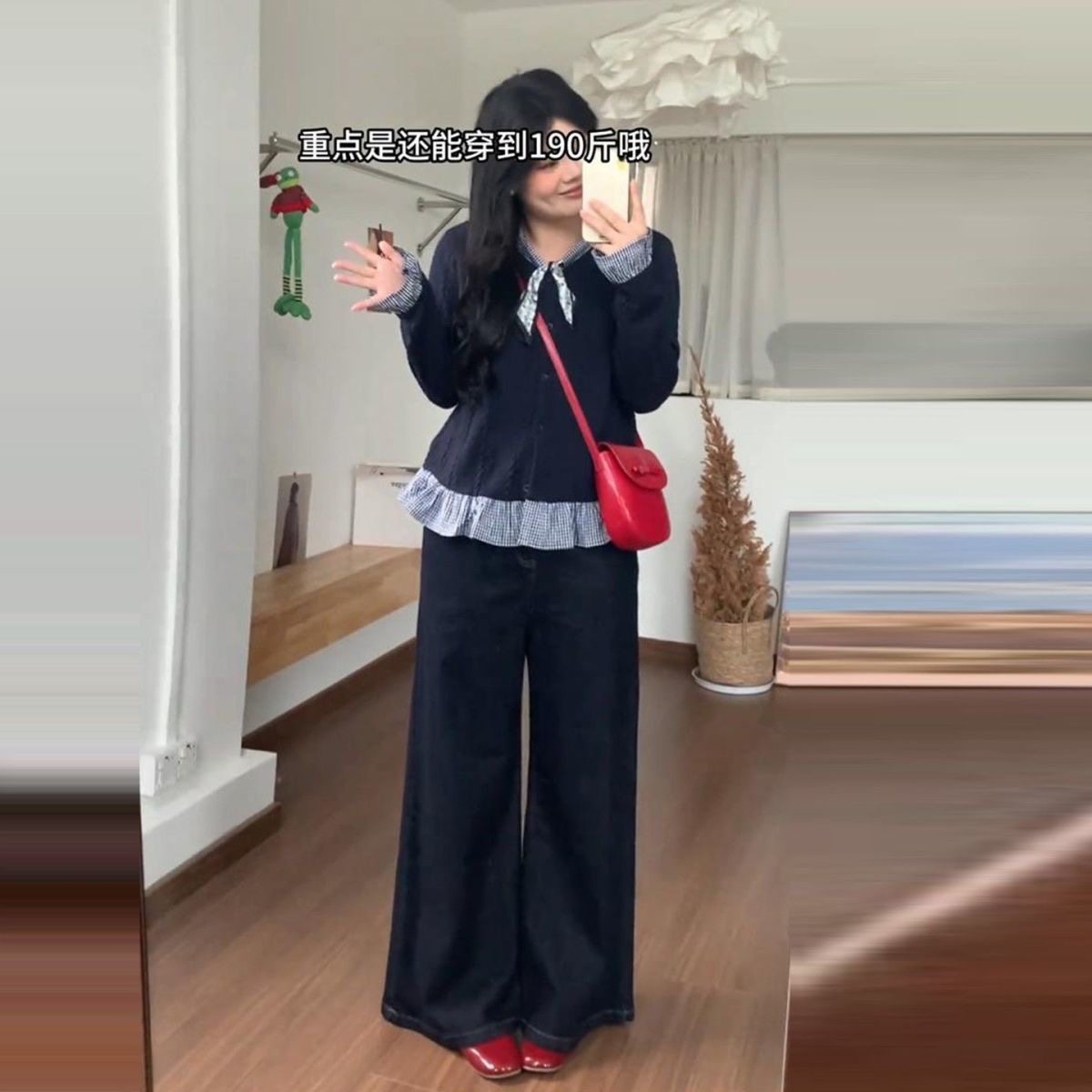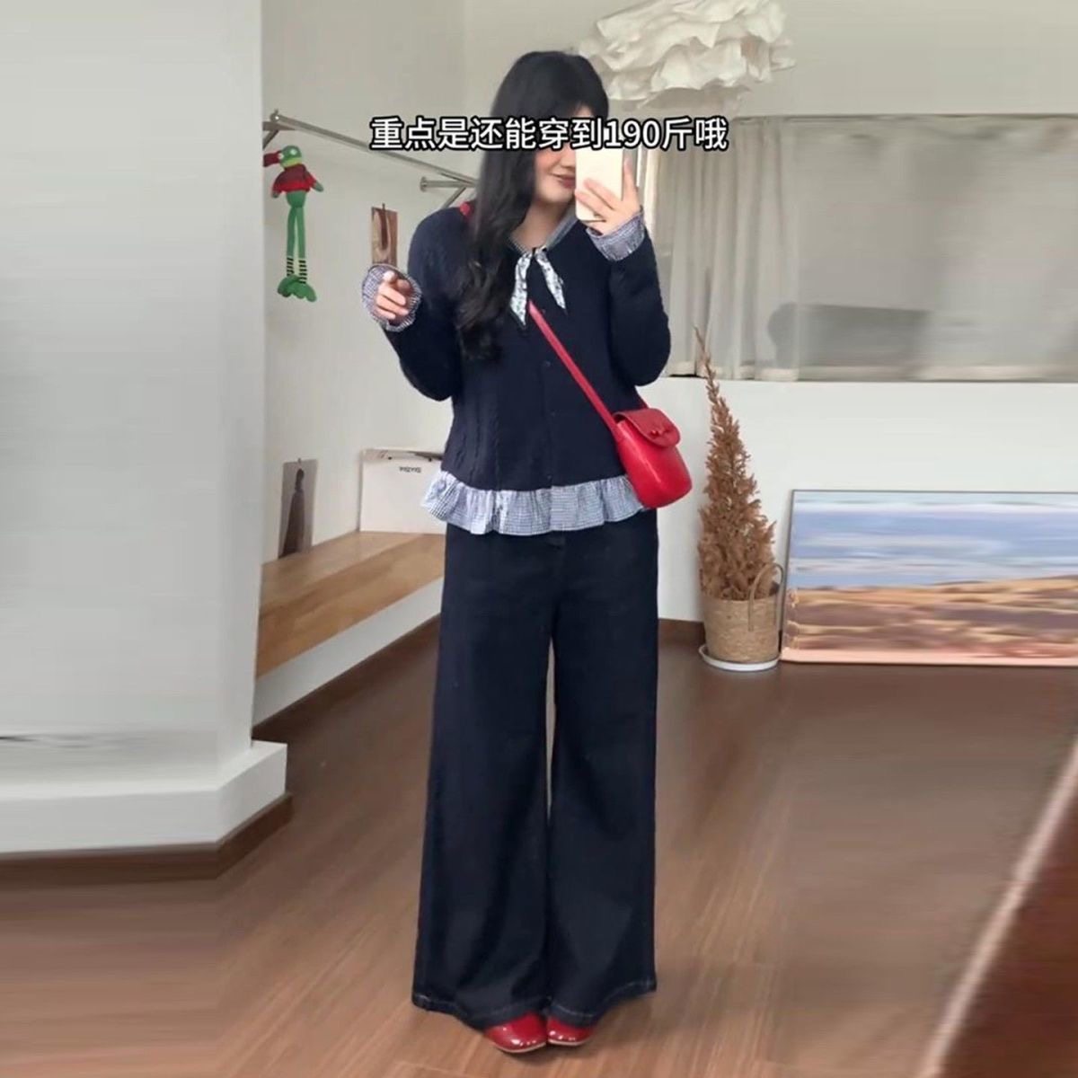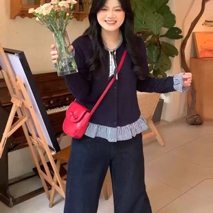 女春秋微胖mm显瘦打底衫 纹拼接针织开衫 内搭减龄上衣 学院风格 大码