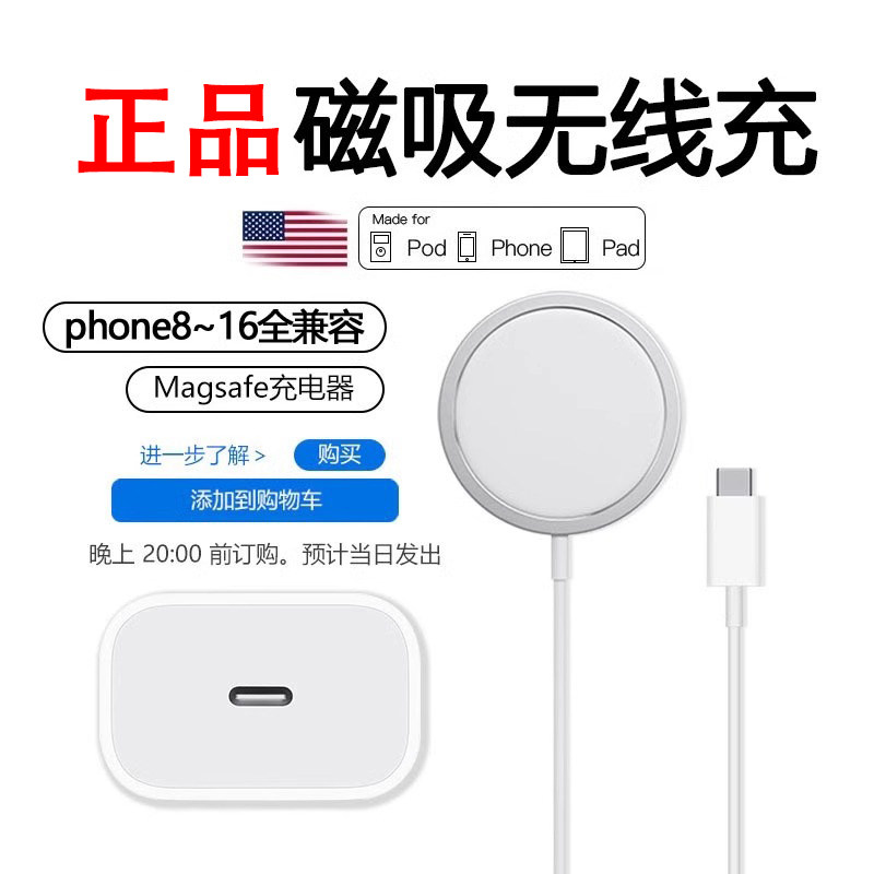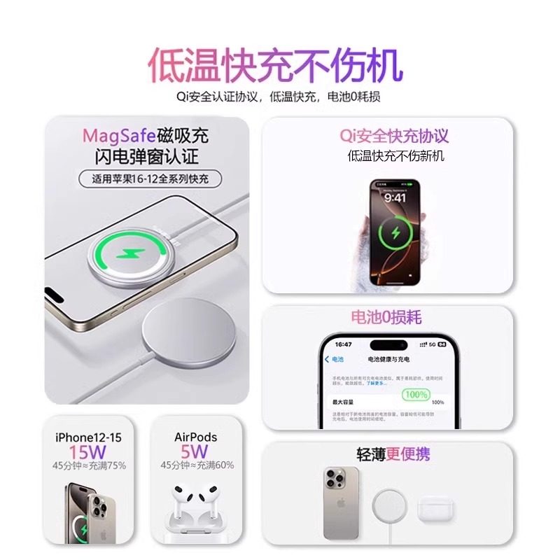 12magsafe17正品 无线充电器16promax磁吸PD充电线原iphone16快充30W充电头装 无线充电 手机15