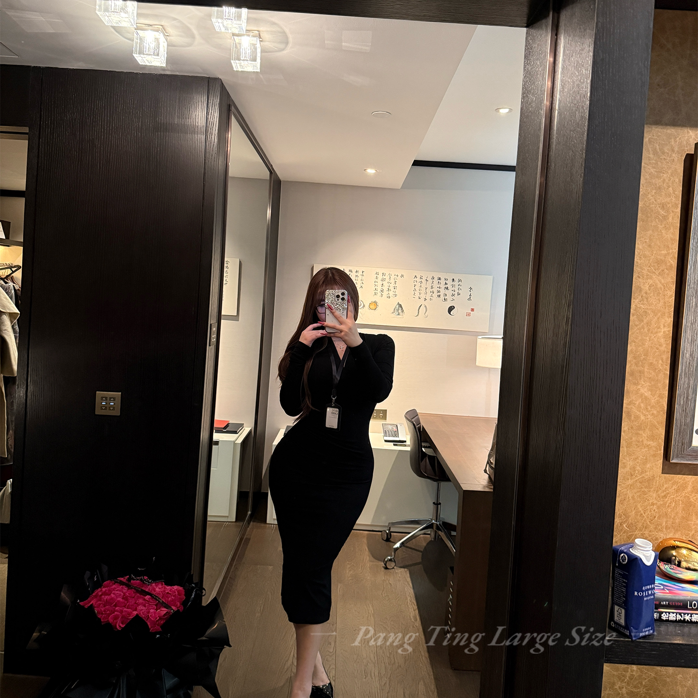 胖婷大码 包臀连衣裙 定制胖mm「OL海妖」性感纯欲加绒V领弹力修身