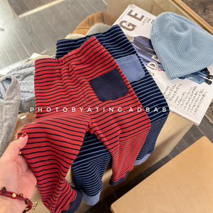 加厚加绒裤 直筒阔腿蓝色休闲裤 子女春秋季 卫裤 宽松运动裤 ICHMODE