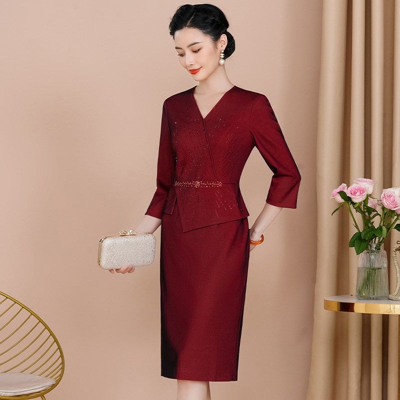 LHMknk1画报夫人原创自制秋冬温柔麂皮绒珠链旗袍 伊人粉