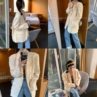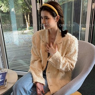 老钱风高级感麂皮绒宽松复古无扣无领西装 INSOMNIA失眠者 秋冬季