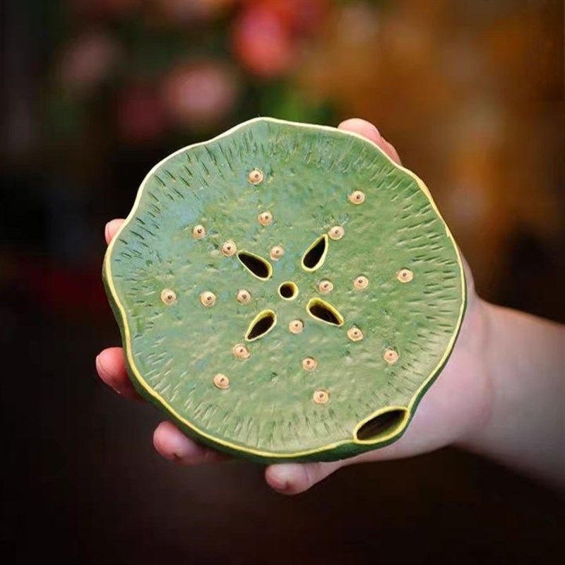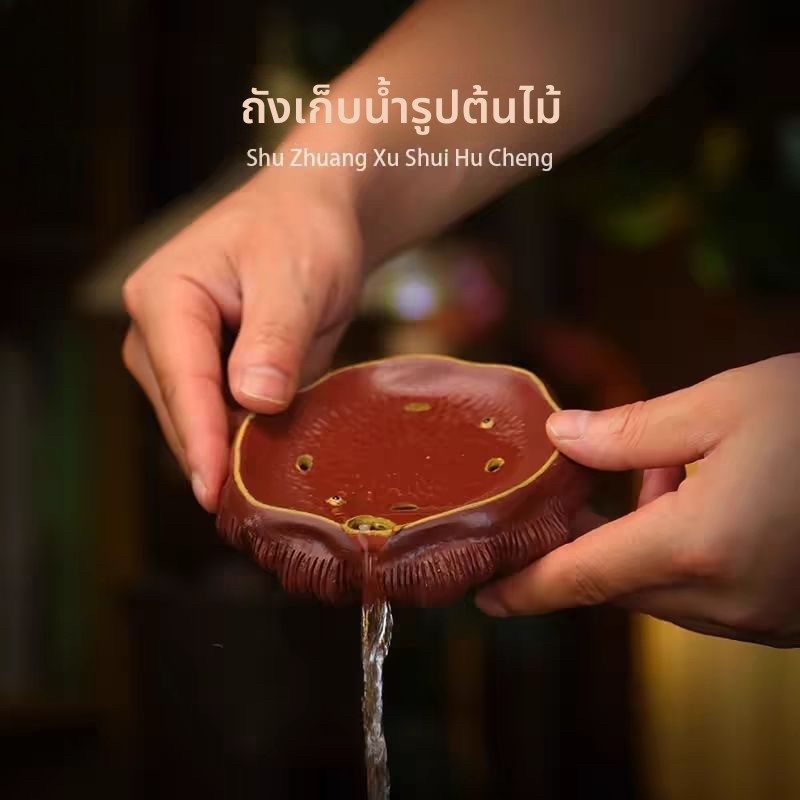 宜兴精品紫砂 手工原矿彷生可储水茶垫茶道 莲蓬壶承干泡茶盘