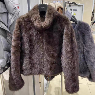 2025秋冬新款 立领毛毛皮草外套洋气皮毛一体拉链羊羔毛上衣女 短款