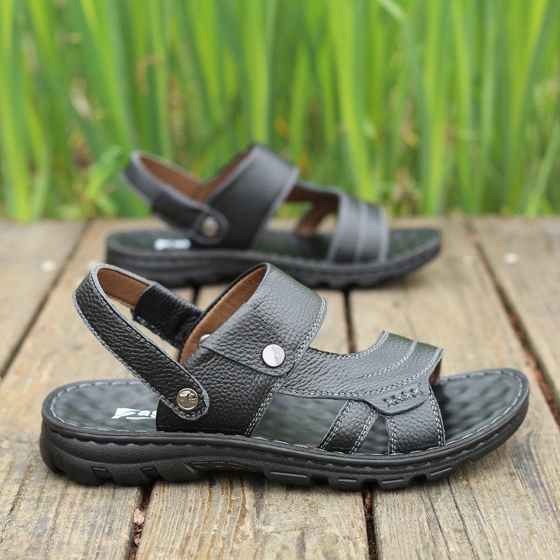 男夏季 真皮厚底爸爸拖鞋 新款 男士 男防滑 牛皮休闲沙滩鞋 红蜻蜓凉鞋