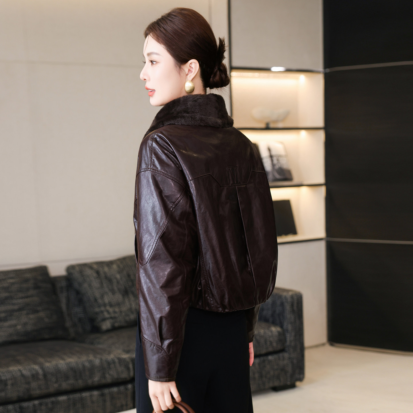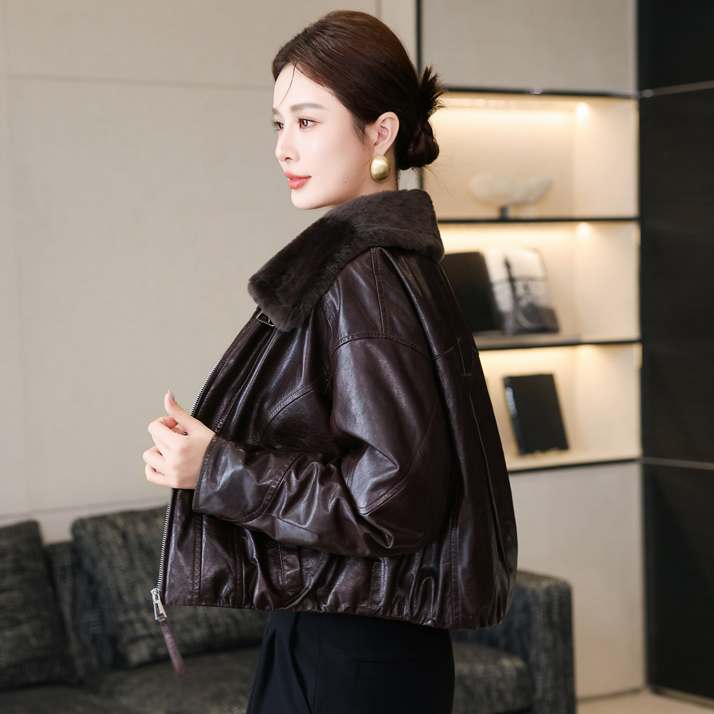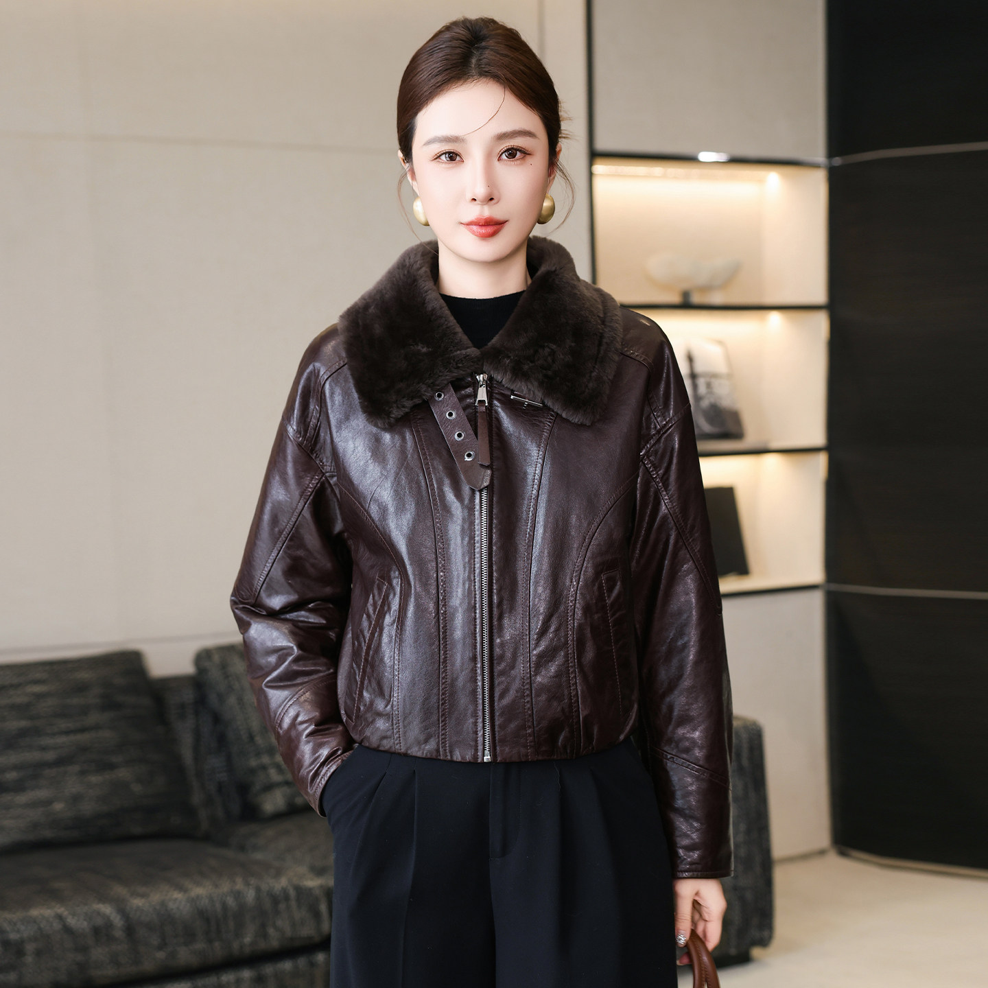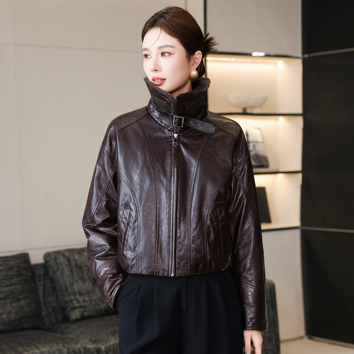 羊羔毛皮毛领羽绒服皮草潮 新款 高端真皮皮衣外套女短款 2025冬季