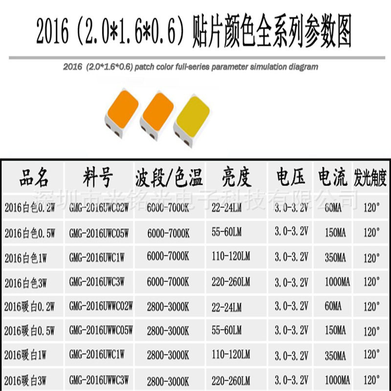 7000K白光贴片灯珠 6000 白灯LED发光二极管 2016白色3W 厂家供应