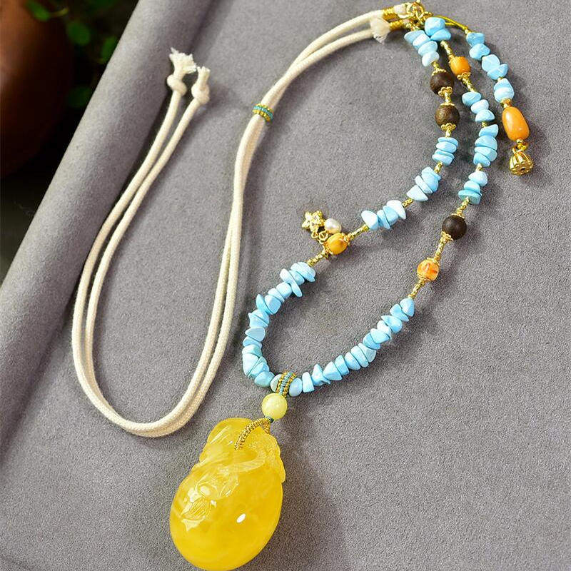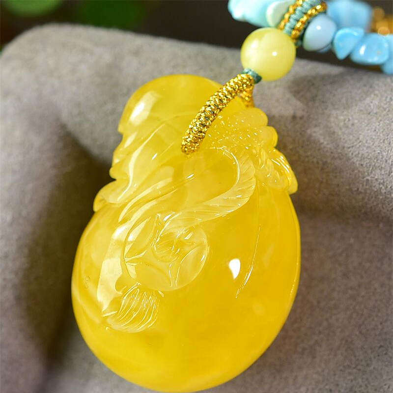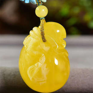 天然俄料蜜糖鸡油黄满蜜钱袋子吊坠女款 项链26.4克无优化无烤色凯