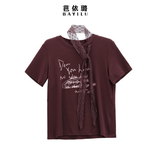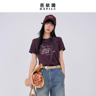T恤日常休闲甜美风圆领上衣女装 字母印花短袖 新品 芭依璐2026春季