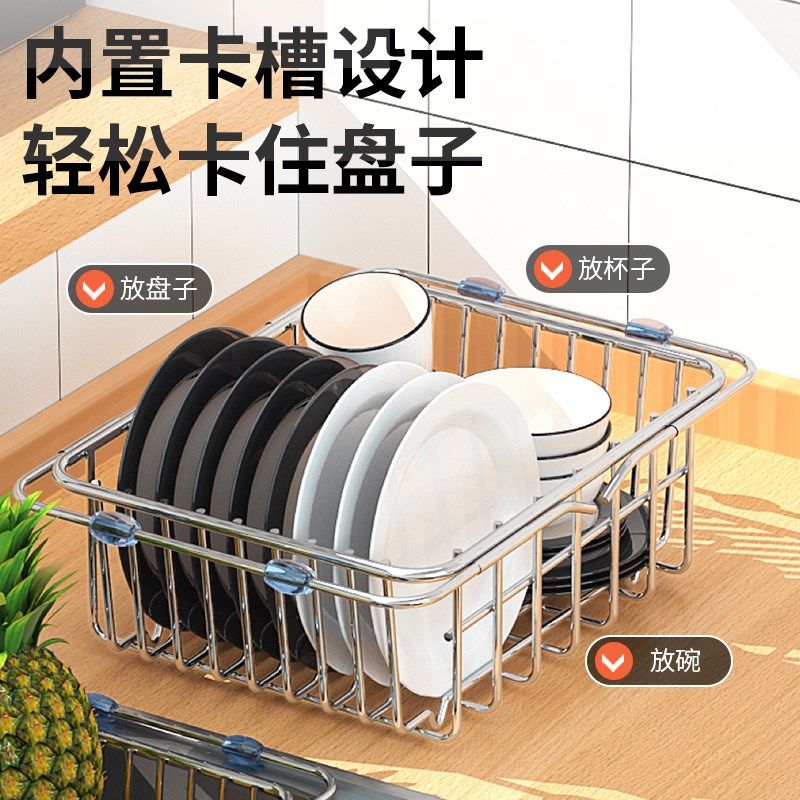 洗碗池水槽沥水架洗菜盆沥水篮304不锈钢厨房漏网碗盘架子可伸缩