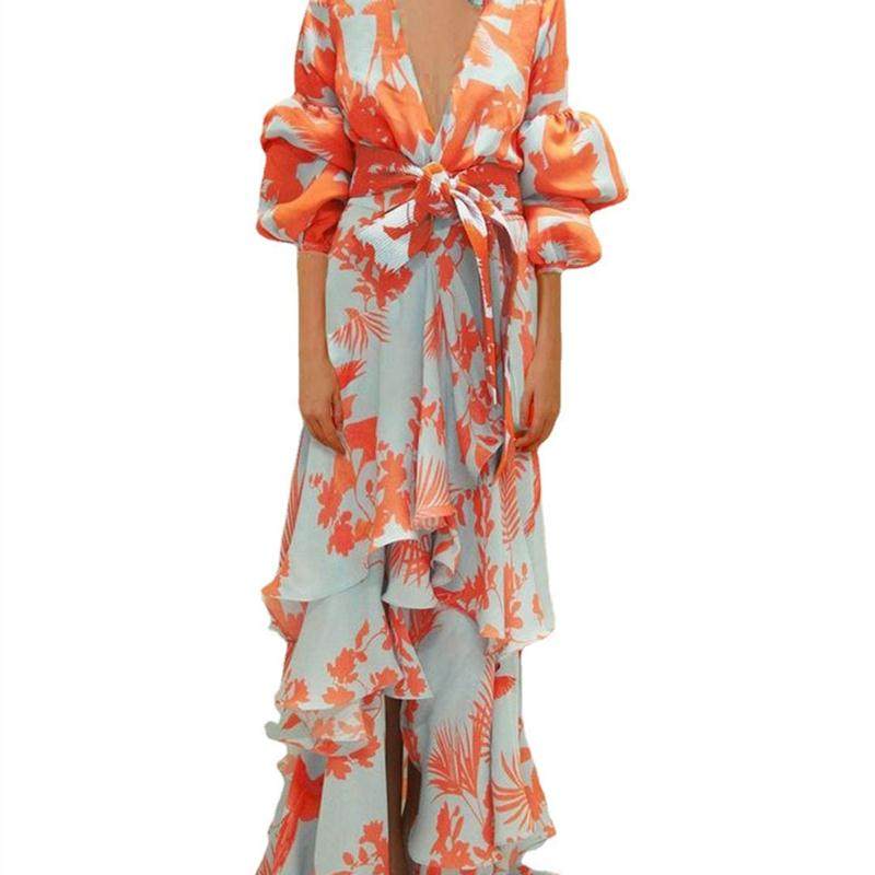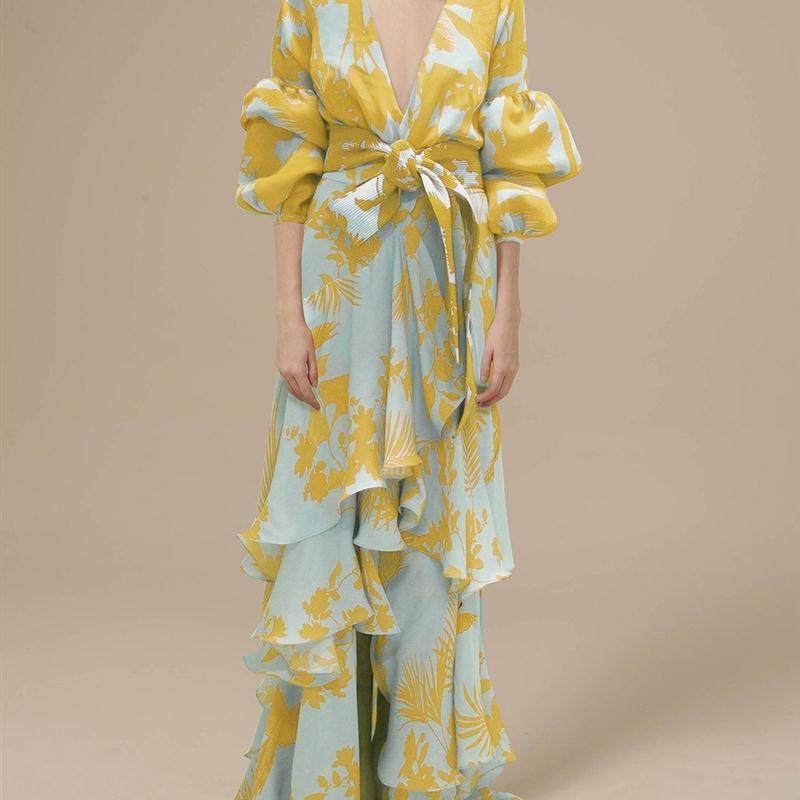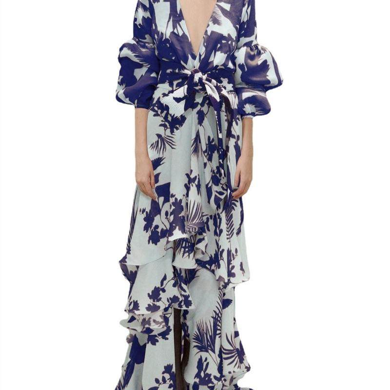 印花度假连衣裙深V领不规则波西米亚长裙女Holiday dress print