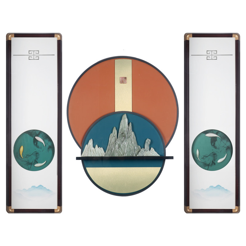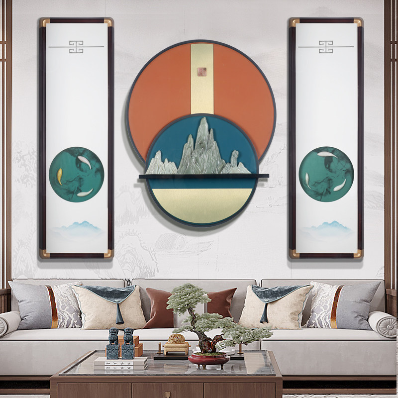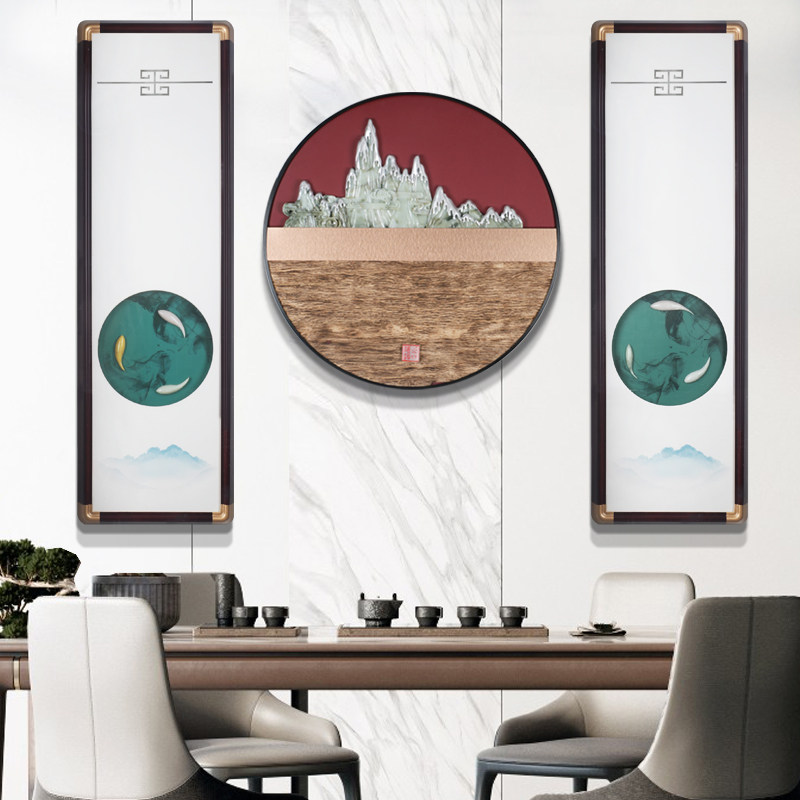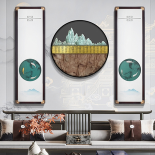 沙发背景墙装 3d立体浮雕玉雕餐厅壁画 饰画轻奢客厅3联挂画新中式
