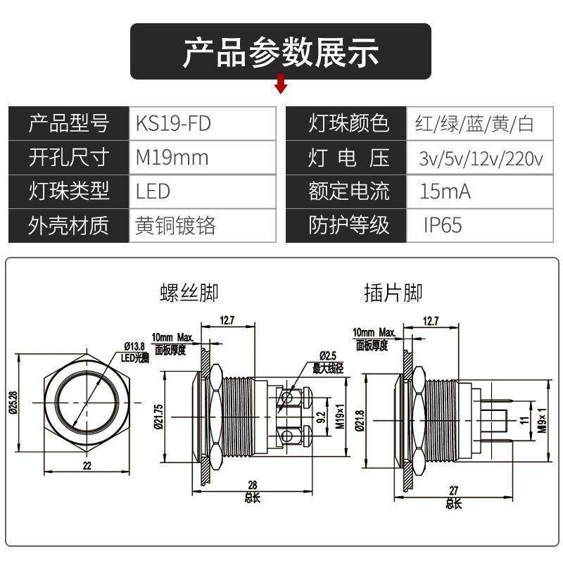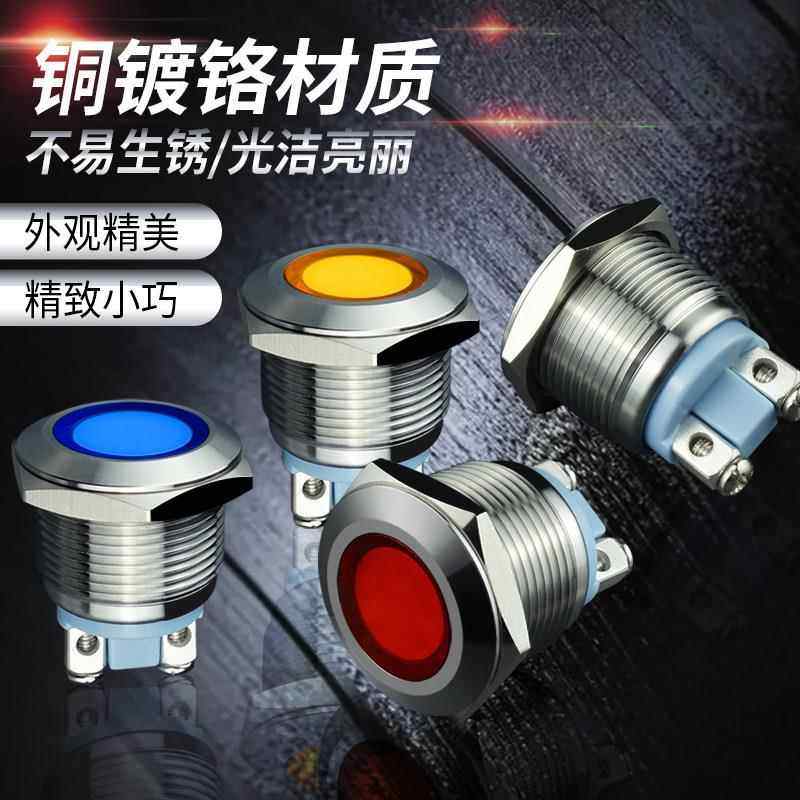 金属指示灯m19mm不锈钢led红灯绿灯信号提示防水灯12 220暖光