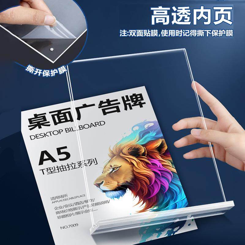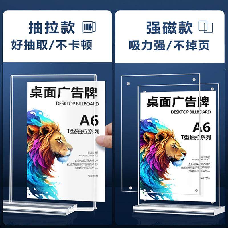 亚克力桌牌A4展示架立牌A5T型广告牌菜单价目表台卡定制收银台