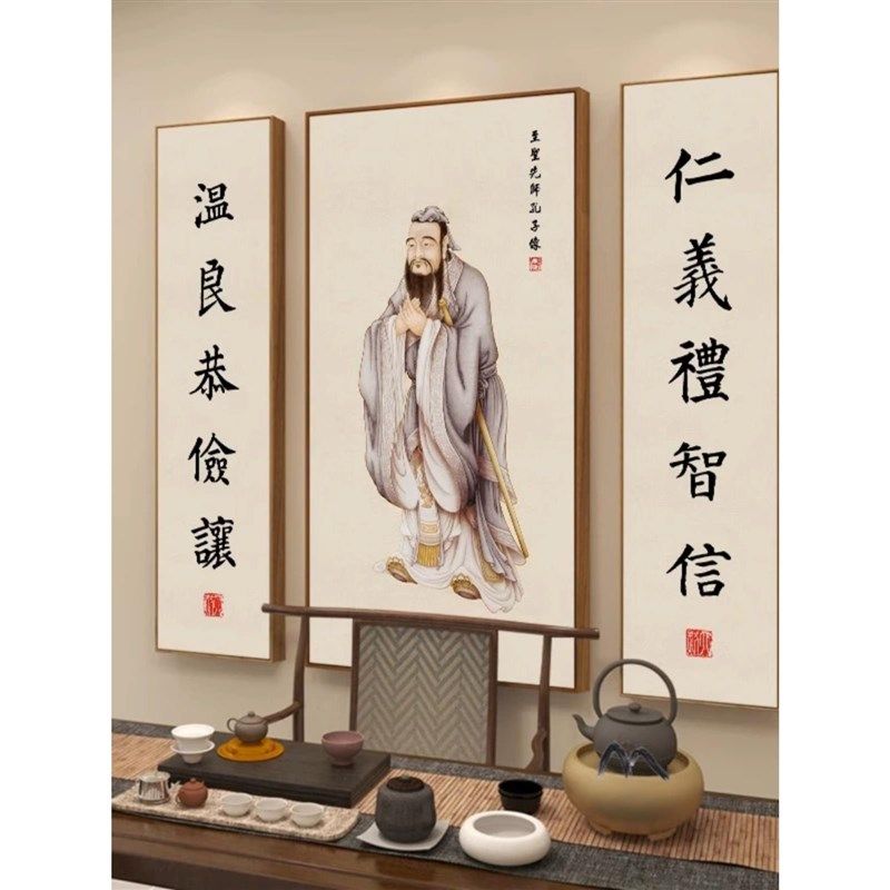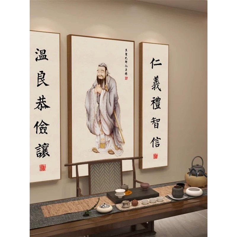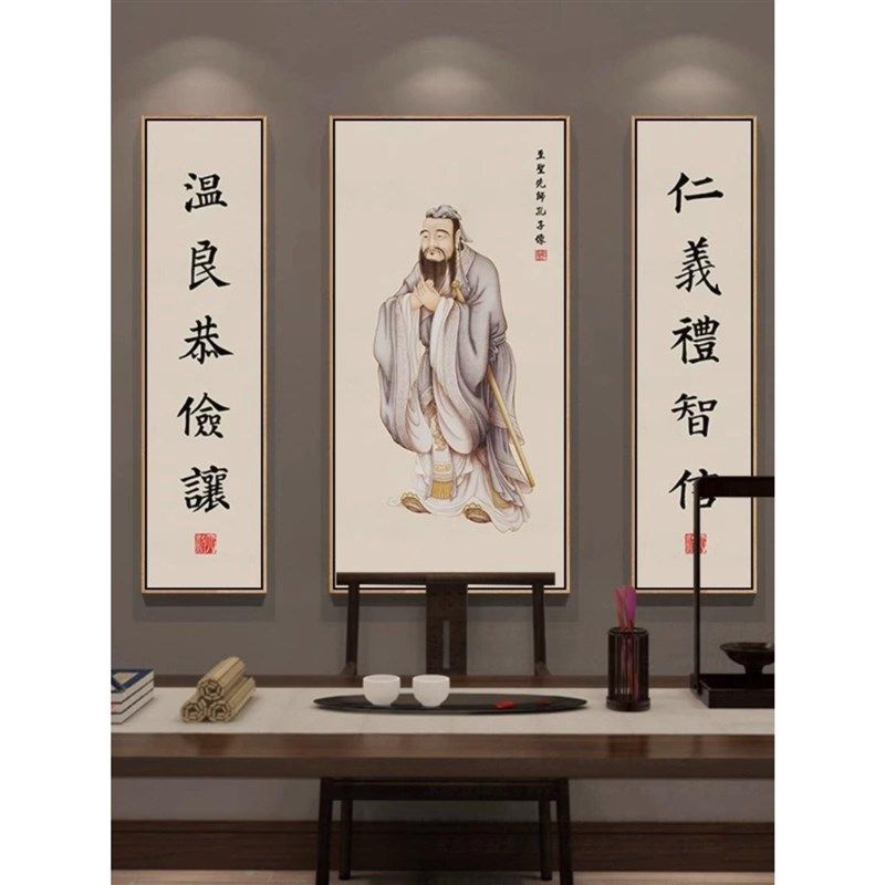 孔夫子画像论语三联挂画中式 饰 客厅仁义礼J智孔子挂画中堂书房装