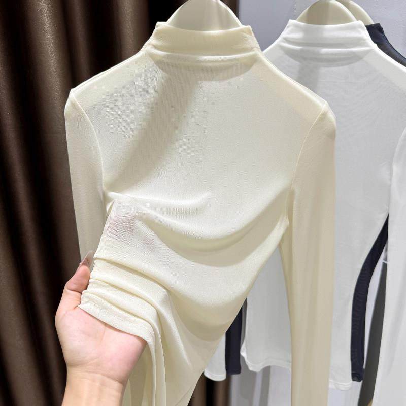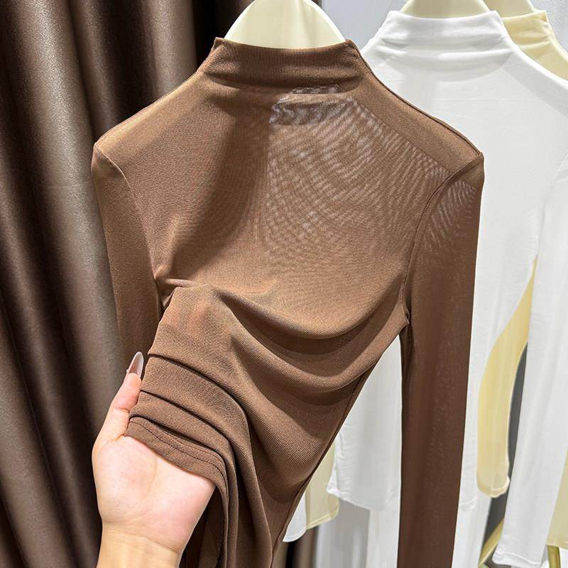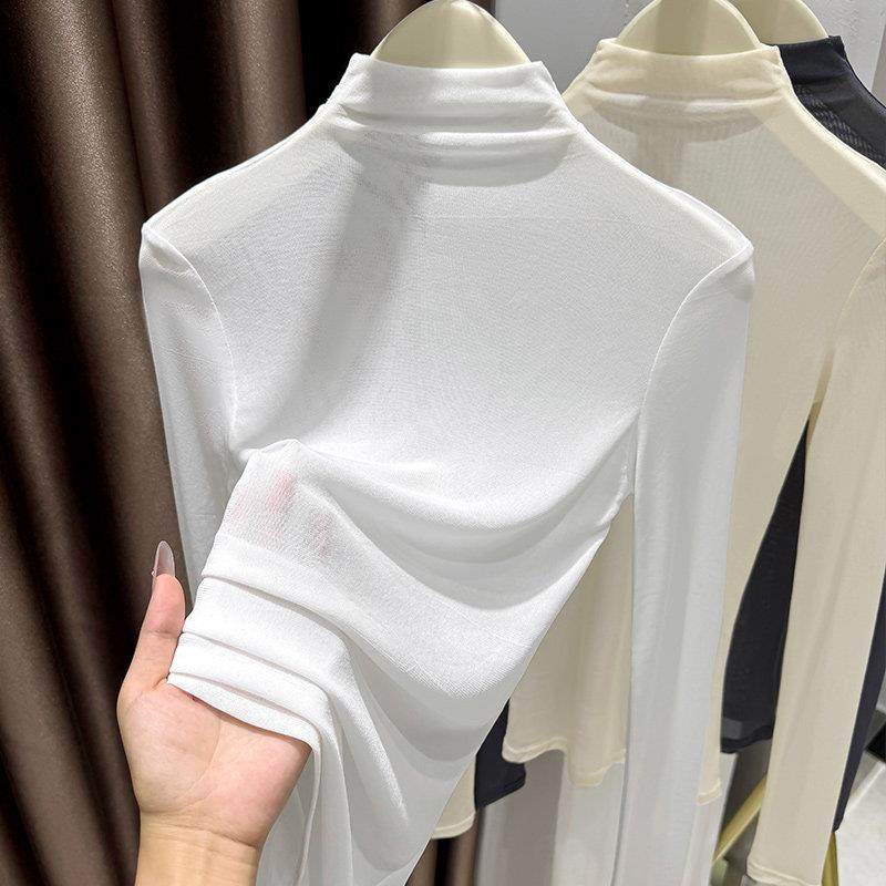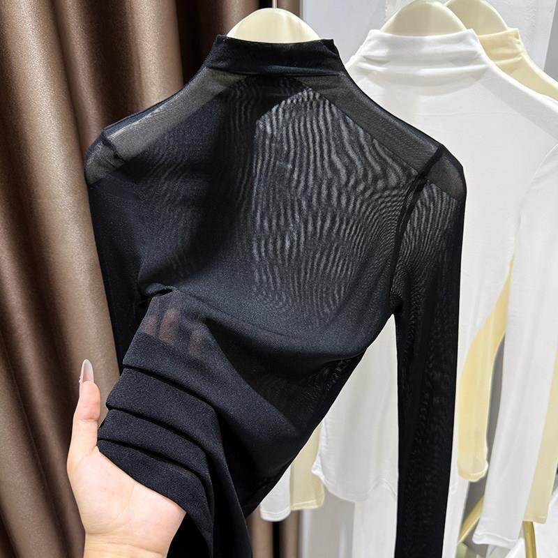 叠穿内搭薄纱衣T恤修身 秋冬新款 上1219e 女长袖 高领高端网纱打底衫